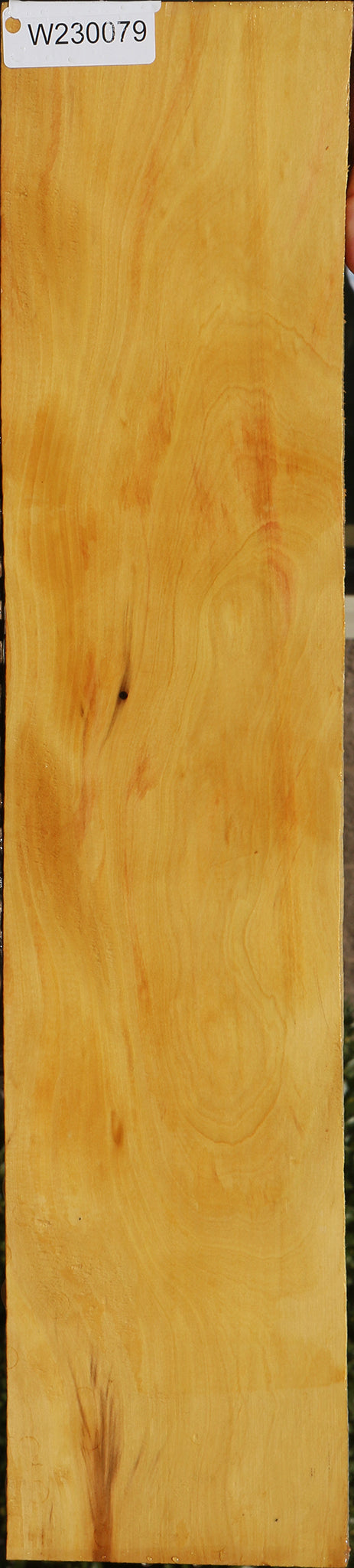Kiln dried and surfaced on two sides, this beautiful South American Kirandy has fine woodworking properties. There may be an occasional surface or end check. Boards over 36" may have a slight bow or twist up to 1/8" but they are generally flat. This lesser known hardwood works well and glues satisfactorily. Colors range from vivid yellow to reddish pink streaks and mottled figure. Try this out for your next woodworking project! This piece has worm holes. Please see pictures for details.