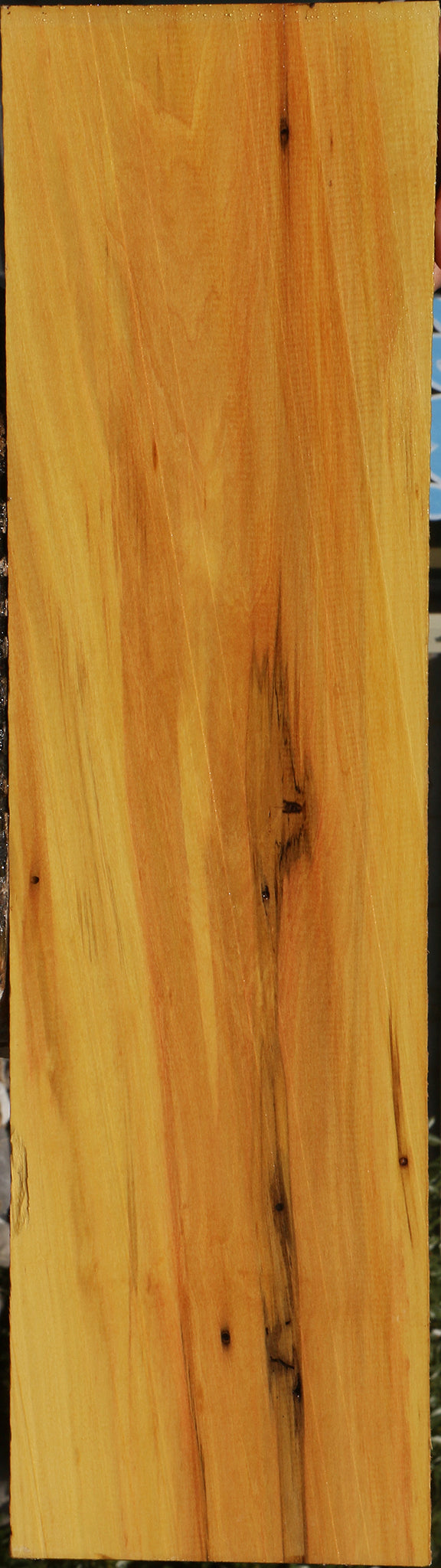 Kiln dried and surfaced on two sides, this beautiful South American Kirandy has fine woodworking properties. There may be an occasional surface or end check. Boards over 36" may have a slight bow or twist up to 1/8" but they are generally flat. This lesser known hardwood works well and glues satisfactorily. Colors range from vivid yellow to reddish pink streaks and mottled figure. Try this out for your next woodworking project! This piece has worm holes. Please see pictures for details.