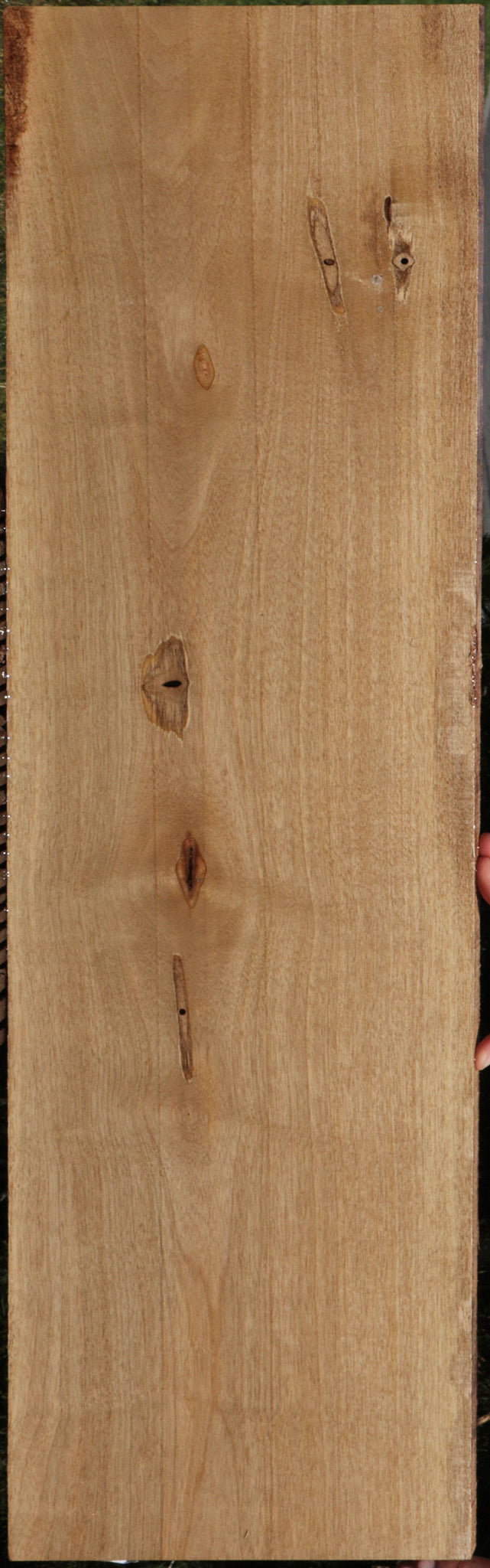 Louro Preto is a dense hardwood that is very workable. It glues well and takes a high natural finish. Ambrosia-like bug holes with colorful streaks are present in most cases. The color changes dramatically from very dark heartwood to the sapwood, leaving contrast that is highly desirable in woodworking projects. An occasional surface or end check may be present. 1/16" to 1/8" bow may be present in boards over 46" in length. This beautiful lumber has been surfaced on two sides and kiln dried. This piece has a split. Please see pictures for details.