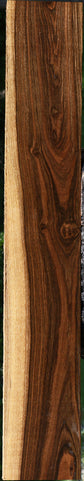 Louro Preto is a dense, durable hardwood prized for its stunning visual contrast and ease of use. Its rich, dark heartwood sharply contrasts with lighter sapwood, creating a dramatic, natural pattern that adds instant character to any project. Subtle ambrosia-like bug holes and colorful streaks further enhance its unique appearance, making each board one of a kind. This kiln dried lumber is surfaced on two sides and works beautifully, gluing easily and taking a smooth, high-quality natural finish. There may be minor surface or end checks and slight bowing (1/16" to 1/8") in boards over 36". Louro Preto is perfect for fine furniture, cabinetry, or standout accent pieces. It delivers both beauty and versatility. This piece has knots. Please see pictures for details.