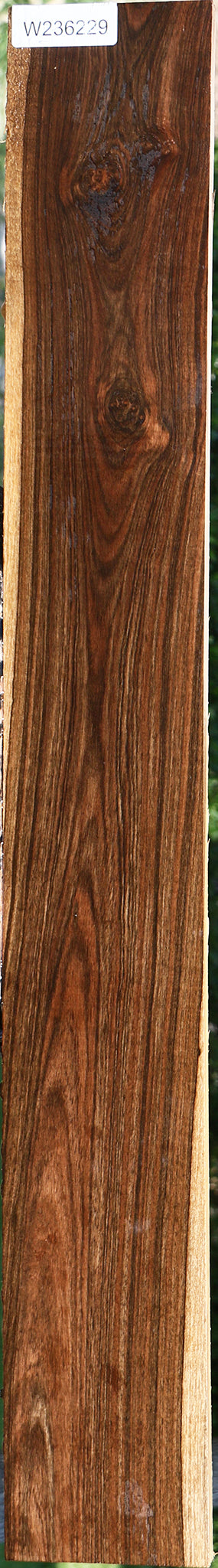 Louro Preto is a dense, durable hardwood prized for its stunning visual contrast and ease of use. Its rich, dark heartwood sharply contrasts with lighter sapwood, creating a dramatic, natural pattern that adds instant character to any project. Subtle ambrosia-like bug holes and colorful streaks further enhance its unique appearance, making each board one of a kind. This kiln dried lumber is surfaced on two sides and works beautifully, gluing easily and taking a smooth, high-quality natural finish. There may be minor surface or end checks and slight bowing (1/16" to 1/8") in boards over 36". Louro Preto is perfect for fine furniture, cabinetry, or standout accent pieces. It delivers both beauty and versatility. This piece has planer skip. Please see pictures for details.