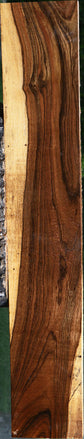 Louro Preto is a dense, durable hardwood prized for its stunning visual contrast and ease of use. Its rich, dark heartwood sharply contrasts with lighter sapwood, creating a dramatic, natural pattern that adds instant character to any project. Subtle ambrosia-like bug holes and colorful streaks further enhance its unique appearance, making each board one of a kind. This kiln dried lumber is surfaced on two sides and works beautifully, gluing easily and taking a smooth, high-quality natural finish. There may be minor surface or end checks and slight bowing (1/16" to 1/8") in boards over 36". Louro Preto is perfect for fine furniture, cabinetry, or standout accent pieces. It delivers both beauty and versatility. This piece has bug holes, worm holes, and checks. Please see pictures for details.