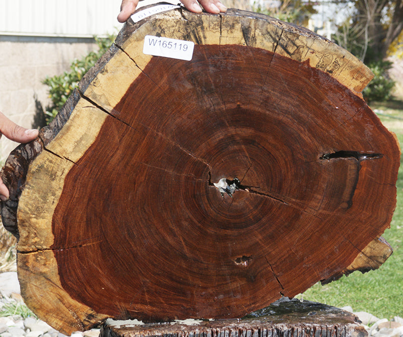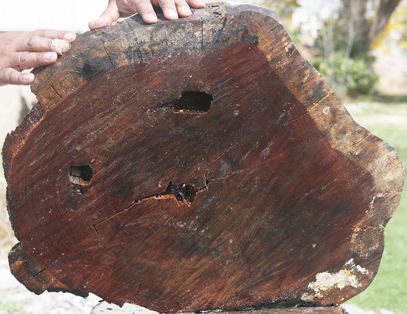 Macacauba works easily and glues well. It takes an exceptionally high polish when finished. This wood is air dried and sanded on two sides. The thickness can vary. Please see measurement for details. Live edges can be present and often contain checks and cracks. Please see photos for voids and larger defects and inquire before purchasing if extra details are needed. Rounds/cookies/part of cookies were cut with a chainsaw. One face may be rough and the other sanded. Occasional both faces are rough. This beautiful exotic hardwood is ready for your unique woodworking projects!