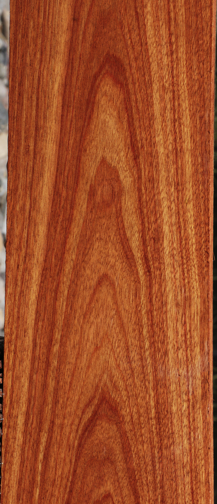 Macacauba works easily and glues well, taking an exceptionally high polish when finished. This lumber is kiln dried and surfaced on two sides. Boards over 36" may have a slight 1/16" to 1/8" bow or twist. This beautiful exotic hardwood is ready for your unique woodworking projects! This piece has a 3/4" bow. Please see pictures for details.