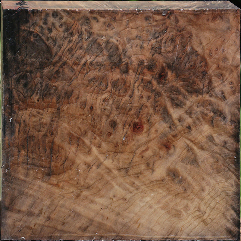 This Madrone burl turning stock has pinkish brown color and lots of interesting grain! Dark red streaks might be present in some pieces. Madrone is a Pacific Northwest hardwood that is very easy to work with, turning well & taking a high polish. This wood was freshly cut in May 2023, pressure cooked, wax sealed, and is ready for twice turning. The internal stress has been removed through the pressure cooking process, but the wood does contain moisture and is considered freshly cut. Twice turning rather than air drying is recommended due to checking that occurs in this species. Keep the wax on this wood and start your twice turning within 60-90 days for best results. An occasional surface or edge check may be present. This is a gorgeous species that is well worth the extra effort! Also, you can turn creative and unique pieces that will morph into flowing lines as your bowl dries. Some pieces may have black surfaces that can penetate 1/2".