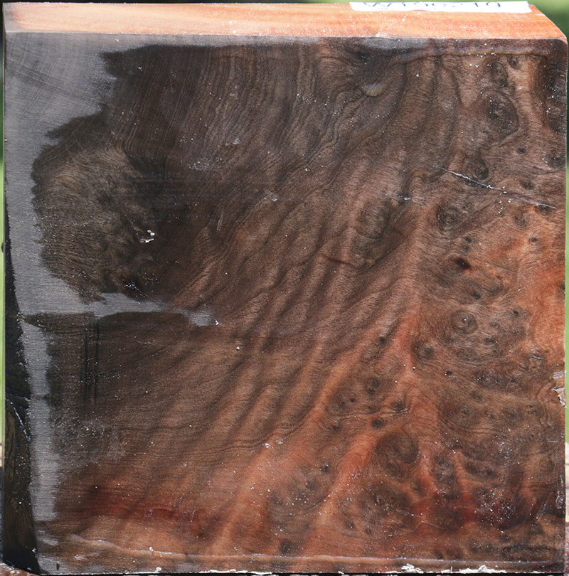 This Madrone burl turning stock has pinkish brown color and lots of interesting grain! Dark red streaks might be present in some pieces. Madrone is a Pacific Northwest hardwood that is very easy to work with, turning well & taking a high polish. This wood was freshly cut in May 2023, pressure cooked, wax sealed, and is ready for twice turning. The internal stress has been removed through the pressure cooking process, but the wood does contain moisture and is considered freshly cut. Twice turning rather than air drying is recommended due to checking that occurs in this species. Keep the wax on this wood and start your twice turning within 60-90 days for best results. An occasional surface or edge check may be present. This is a gorgeous species that is well worth the extra effort! Also, you can turn creative and unique pieces that will morph into flowing lines as your bowl dries. Some pieces may have black surfaces that can penetate 1/2".