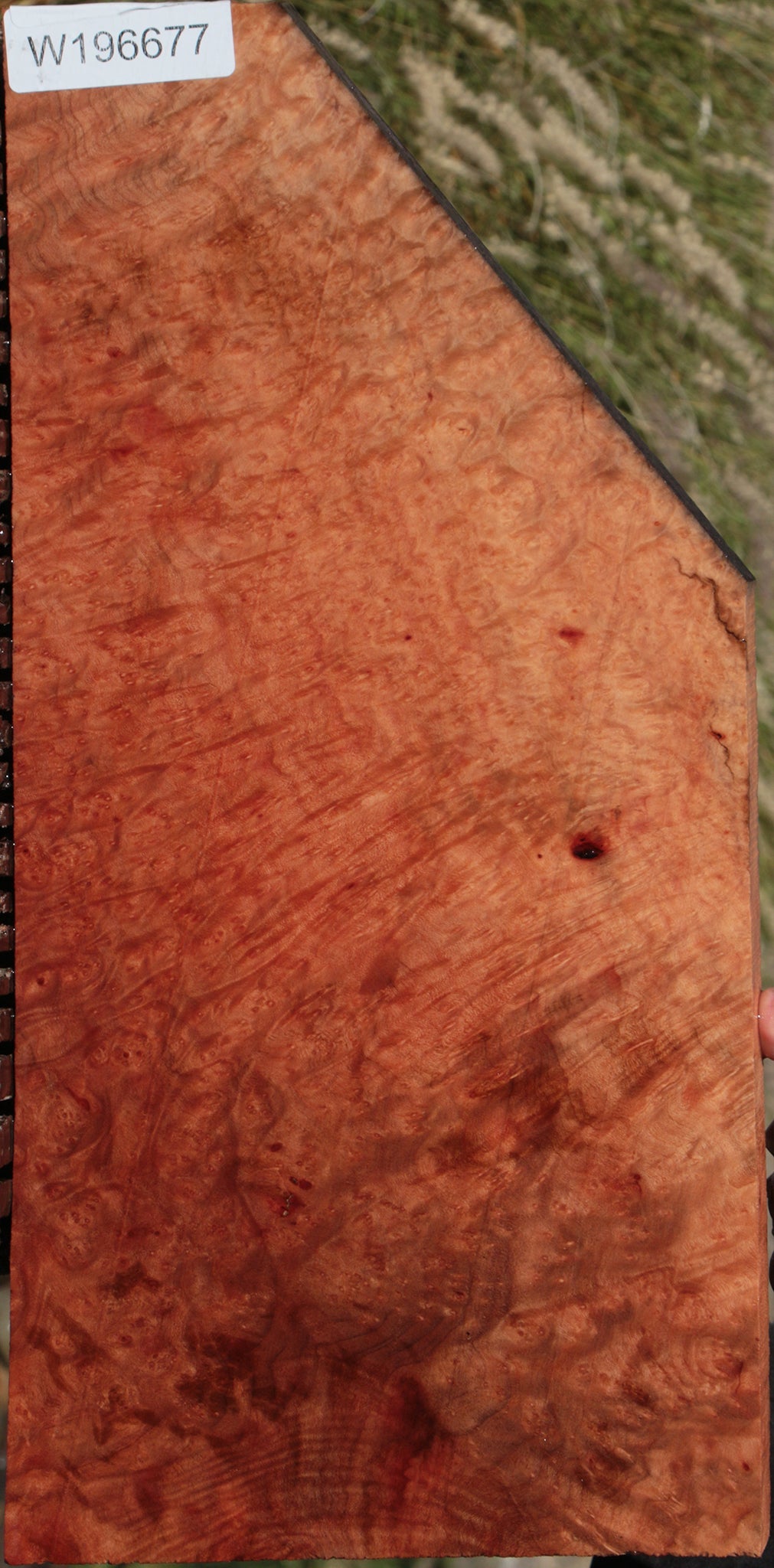 This Madrone burl lumber has pinkish brown color and lots of interesting grain! Dark red streaks might be present in some pieces. Madrone is a Pacific Northwest hardwood that is very easy to work with and finish. This burl was pressure cooked and vacuum kiln dried. The internal stress has been removed through the pressure cooking process. An occasional surface or edge check may be present. Checks or inclusions are normal in the burl eyes. If black color is present on the surface of the board, it usually does not penetrate further than 1/2". This is a gorgeous species that is ideal for many woodworking projects! This piece has inclusions and checks. Please see pictures for details.