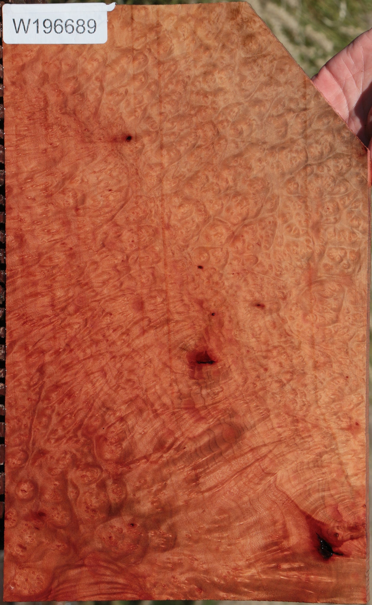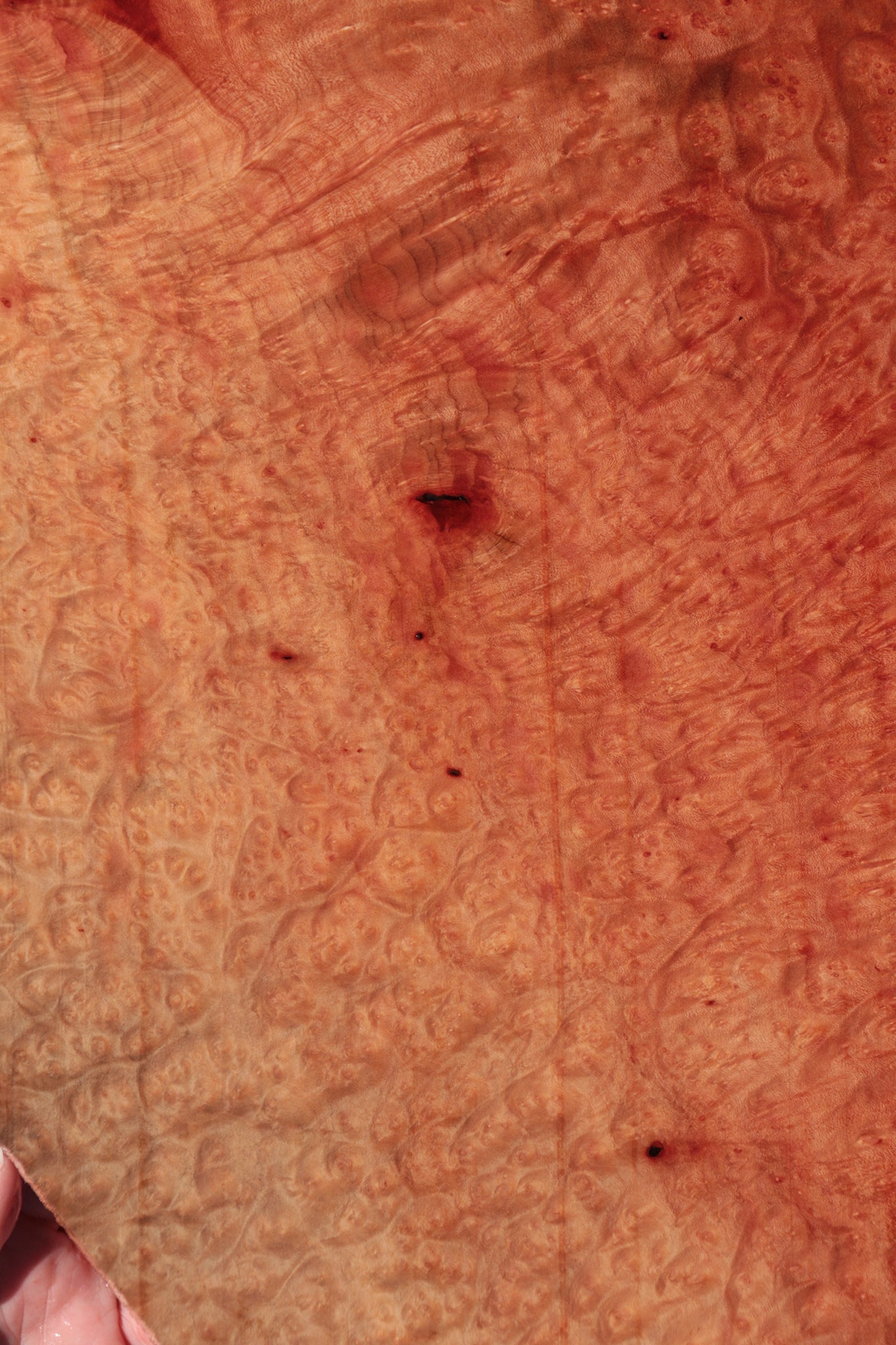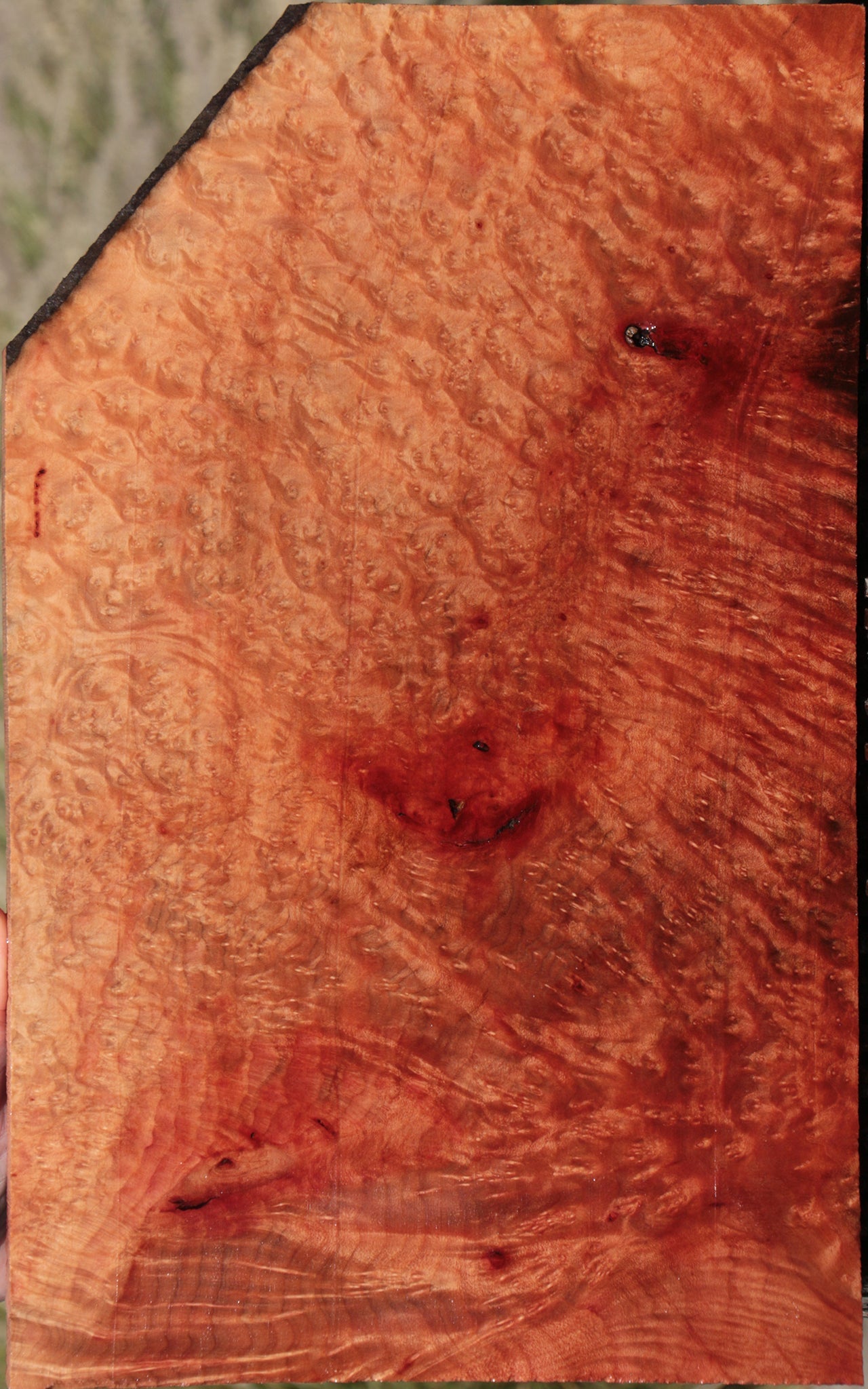 This Madrone burl lumber has pinkish brown color and lots of interesting grain! Dark red streaks might be present in some pieces. Madrone is a Pacific Northwest hardwood that is very easy to work with and finish. This burl was pressure cooked and vacuum kiln dried. The internal stress has been removed through the pressure cooking process. An occasional surface or edge check may be present. Checks or inclusions are normal in the burl eyes. If black color is present on the surface of the board, it usually does not penetrate further than 1/2". This is a gorgeous species that is ideal for many woodworking projects! This piece has inclusions and checks. Please see pictures for details.
