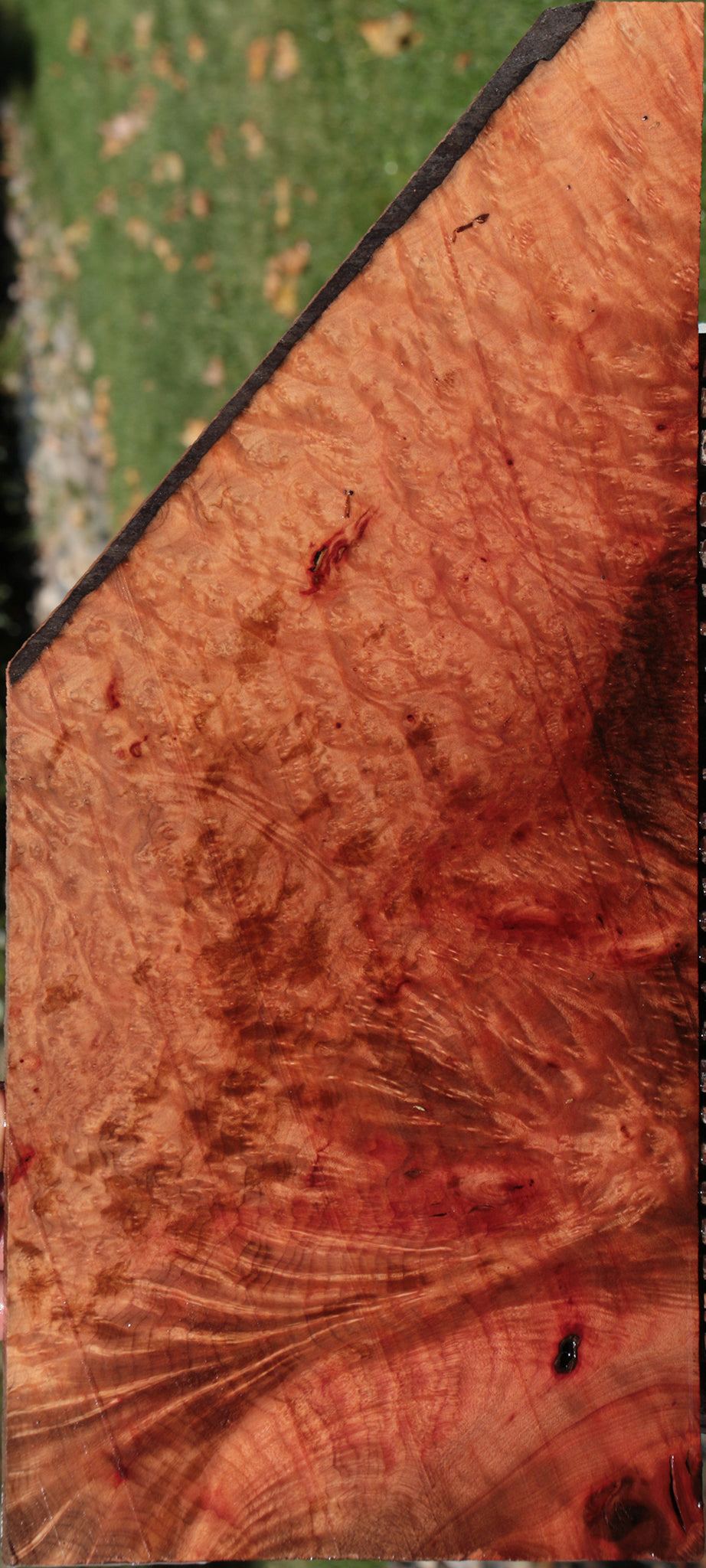 This Madrone burl lumber has pinkish brown color and lots of interesting grain! Dark red streaks might be present in some pieces. Madrone is a Pacific Northwest hardwood that is very easy to work with and finish. This burl was pressure cooked and vacuum kiln dried. The internal stress has been removed through the pressure cooking process. An occasional surface or edge check may be present. Checks or inclusions are normal in the burl eyes. If black color is present on the surface of the board, it usually does not penetrate further than 1/2". This is a gorgeous species that is ideal for many woodworking projects! This piece has inclusions and checks. Please see pictures for details.