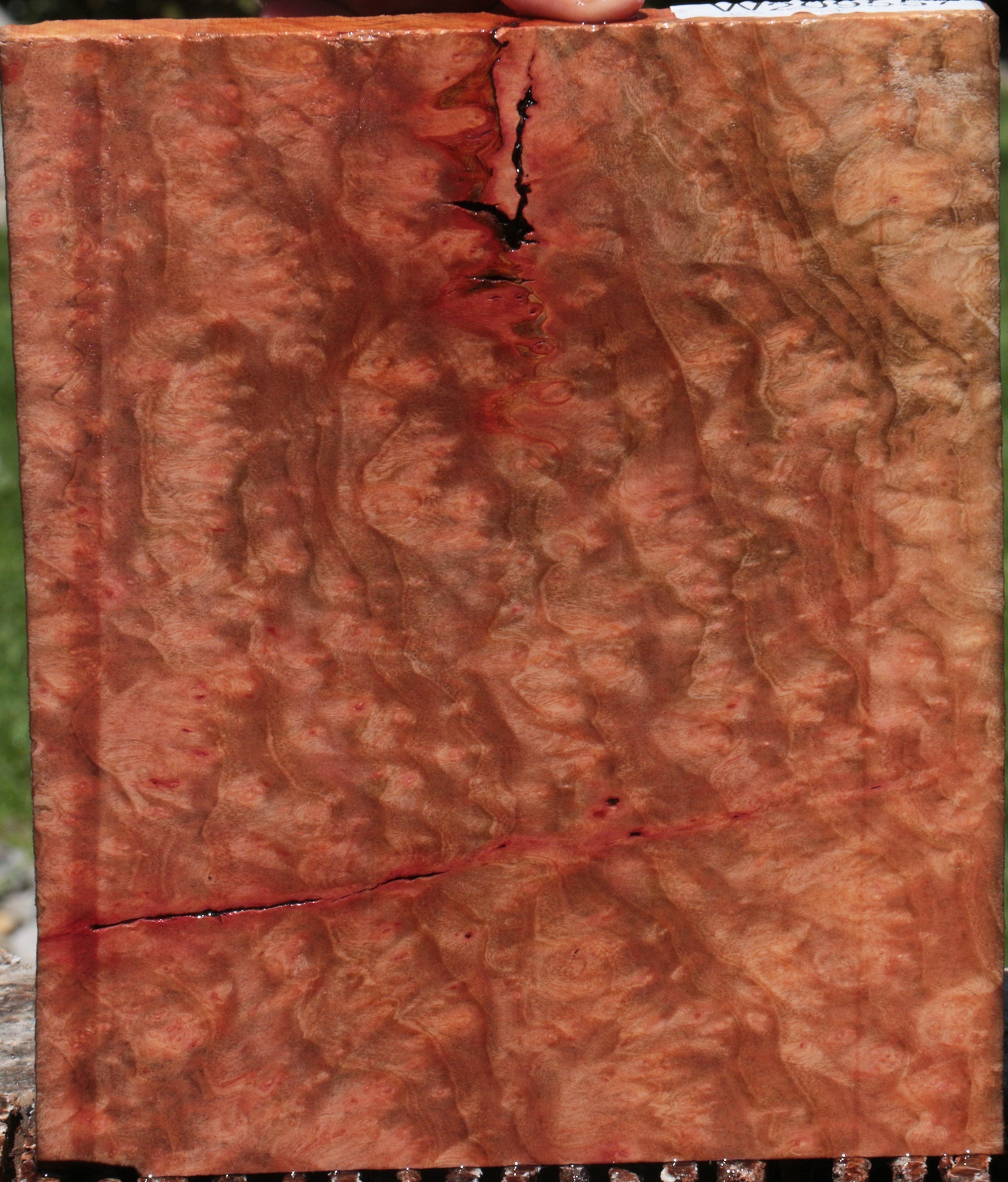 This Madrone burl lumber has pinkish brown color and lots of interesting grain! Dark red streaks might be present in some pieces. Madrone is a Pacific Northwest hardwood that is very easy to work with and finish. This burl was pressure cooked and vacuum kiln dried. The internal stress has been removed through the pressure cooking process. An occasional surface or edge check may be present. Checks or inclusions are normal in the burl eyes. If black color is present on the surface of the board, it usually does not penetrate further than 1/2". This is a gorgeous species that is ideal for many woodworking projects! This piece has a 1/8" twist, splits, and inclusions. Please see pictures for details.