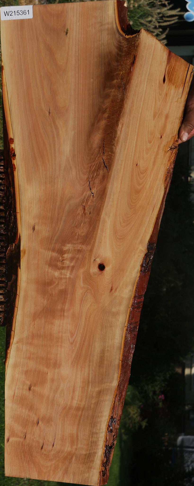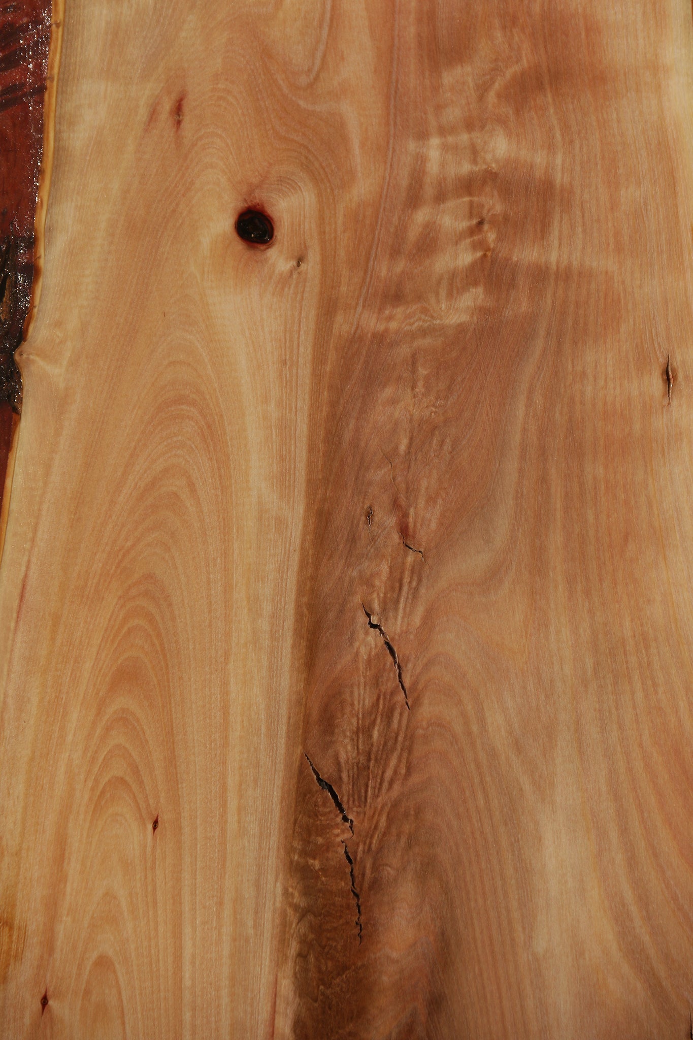 This Madrone lumber has pinkish brown color and lots of interesting grain! Dark red streaks might be present in some pieces. Madrone is a Pacific Northwest hardwood that is very easy to work with and finish. This wood is pressure cooked and vacuum kiln dried. The internal stress has been removed through the pressure cooking process. An occasional surface or edge check may be present. 1/16" to 1/8" bow or twist may be present in boards 36" and longer. This is a gorgeous species that is ideal for many woodworking projects! This rustic board has beautiful crotchwood, a live edge, knots, splits, checks, inclusions, and planer skip. Please see pictures for details.