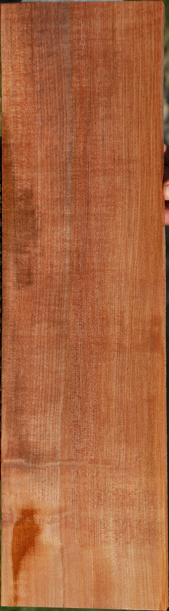 This Madrone lumber has pinkish brown color and lots of interesting grain! Dark red streaks might be present in some pieces. Madrone is a Pacific Northwest hardwood that is very easy to work with and finish. This wood is pressure cooked and vacuum kiln dried. The internal stress has been removed through the pressure cooking process. An occasional surface or edge check may be present. 1/16" to 1/8" bow or twist may be present in boards 36" and longer. This is a gorgeous species that is ideal for many woodworking projects! This figured board has pin holes and planer skip. Please see pictures for details.