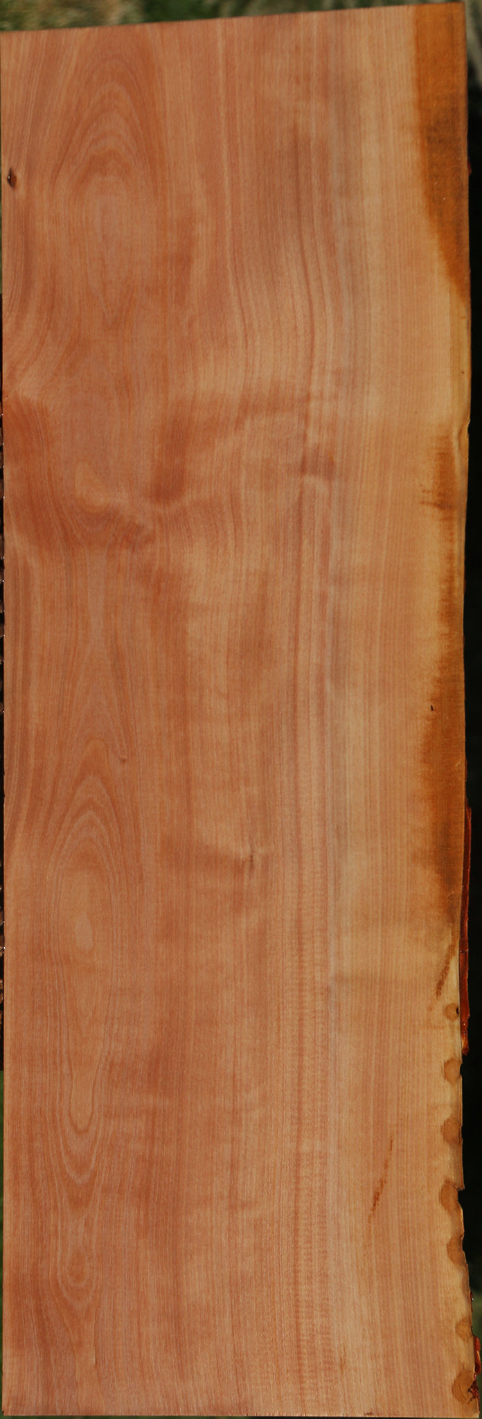 This Madrone lumber has pinkish brown color and lots of interesting grain! Dark red streaks might be present in some pieces. Madrone is a Pacific Northwest hardwood that is very easy to work with and finish. This wood is pressure cooked and vacuum kiln dried. The internal stress has been removed through the pressure cooking process. An occasional surface or edge check may be present. 1/16" to 1/8" bow or twist may be present in boards 36" and longer. This is a gorgeous species that is ideal for many woodworking projects! This piece is great for a charcuterie board. It has a live edge, inclusions, planer skip, checks, and an end split. Please see pictures for details.