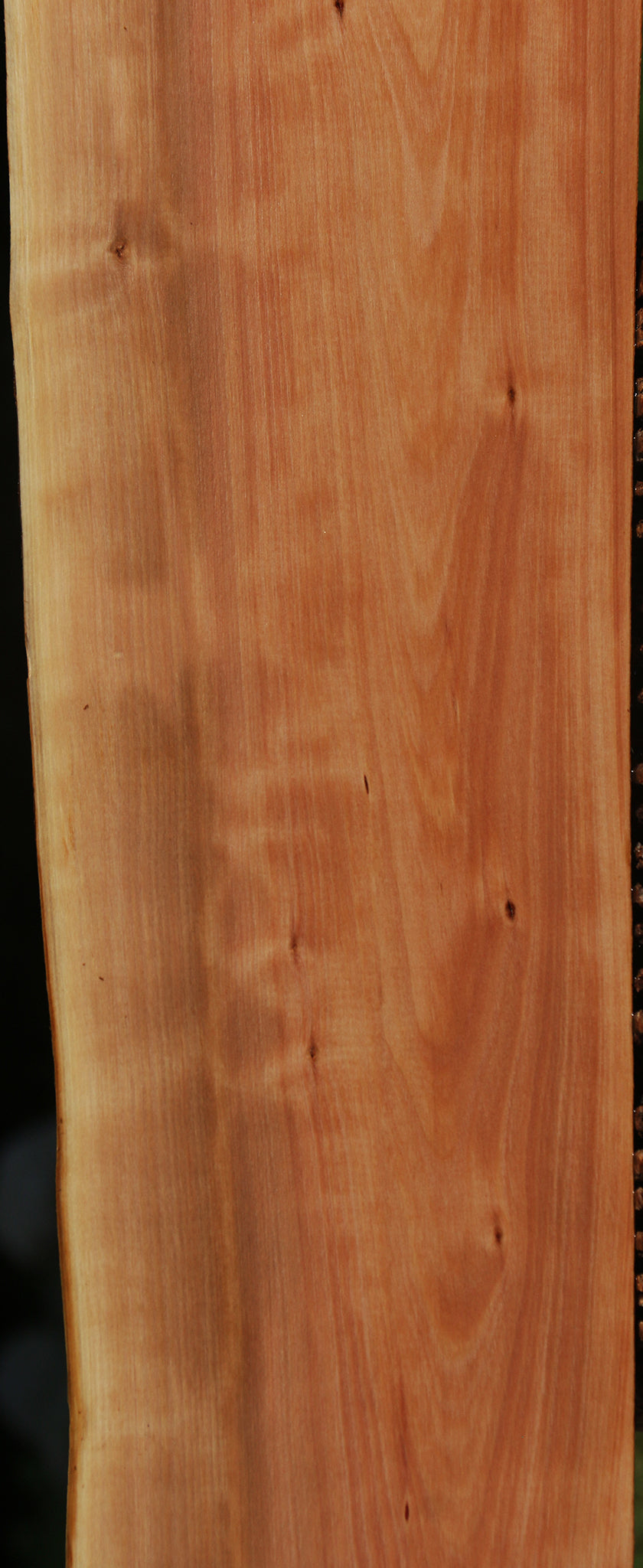 This Madrone lumber has pinkish brown color and lots of interesting grain! Dark red streaks might be present in some pieces. Madrone is a Pacific Northwest hardwood that is very easy to work with and finish. This wood is pressure cooked and vacuum kiln dried. The internal stress has been removed through the pressure cooking process. An occasional surface or edge check may be present. 1/16" to 1/8" bow or twist may be present in boards 36" and longer. This is a gorgeous species that is ideal for many woodworking projects! This board has a live edge, splits, checks, and inclusions. Please see pictures for details.