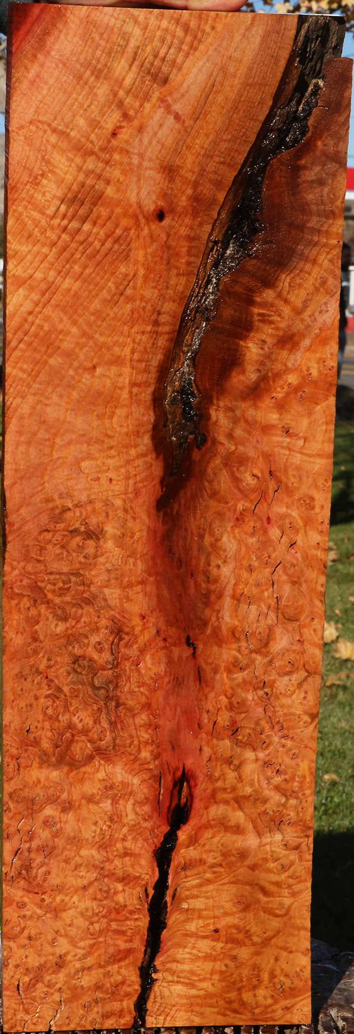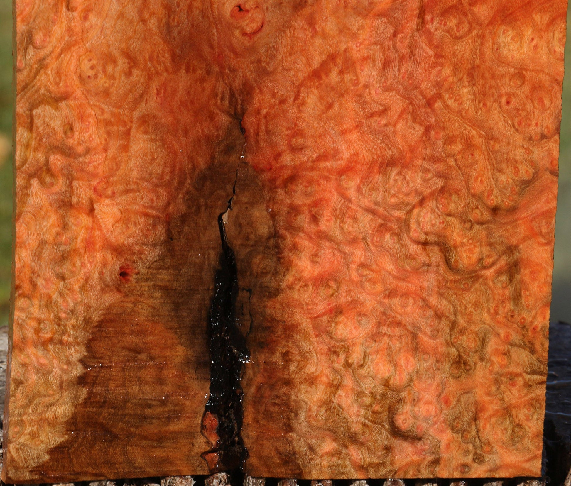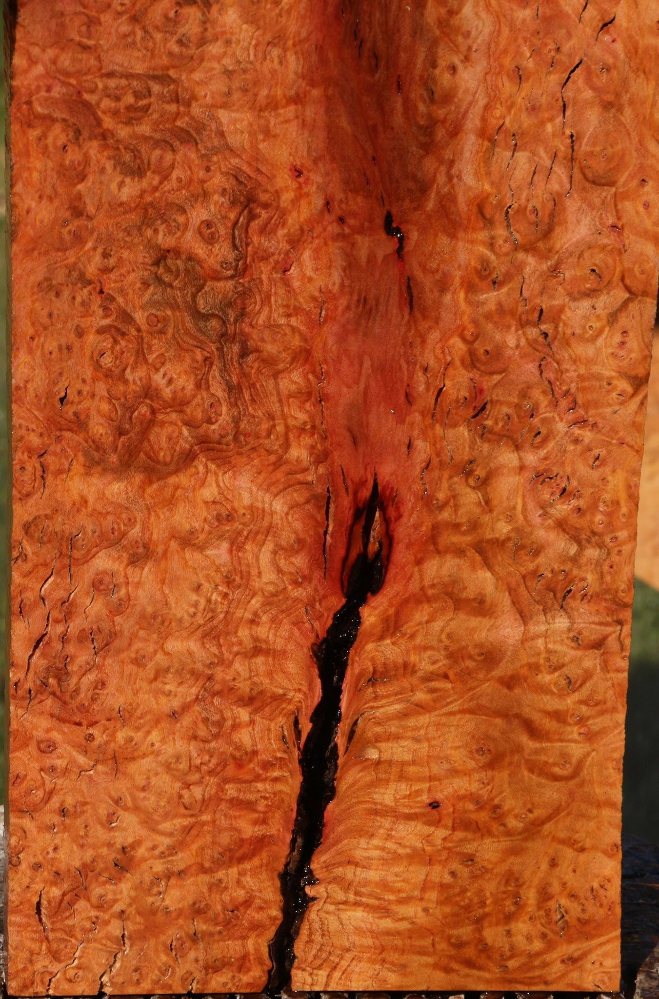 This Madrone burl lumber has pinkish brown color and lots of interesting grain! Dark red streaks might be present in some pieces. Madrone is a Pacific Northwest hardwood that is very easy to work with and finish. This burl was pressure cooked and vacuum kiln dried. The internal stress has been removed through the pressure cooking process. An occasional surface or edge check may be present. Checks or inclusions are normal in the burl eyes. If black color is present on the edges of the board, it usually does not penetrate further than 1/4". This is a gorgeous species that is ideal for many woodworking projects! This piece has splits, checks, and inclusions. This piece is sold "as is" due to defects and is ineligible for a refund or return. Please see the pictures and inquire for more details about the defects if needed.