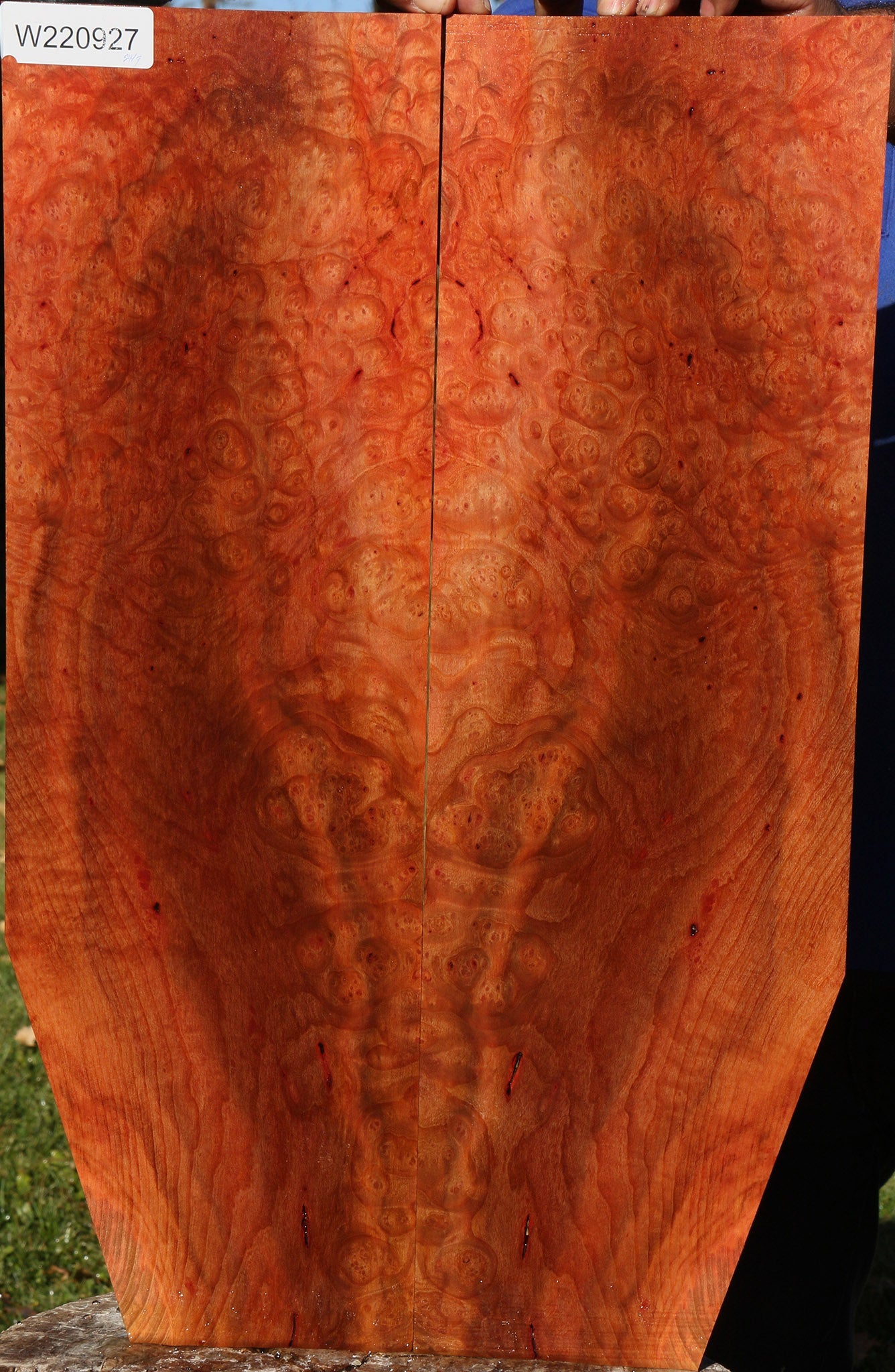 This Madrone burl lumber has pinkish brown color and lots of interesting grain! Dark red streaks might be present in some pieces. Madrone is a Pacific Northwest hardwood that is very easy to work with and finish. This burl was pressure cooked and vacuum kiln dried. The internal stress has been removed through the pressure cooking process. An occasional surface or edge check may be present. Checks or inclusions are normal in the burl eyes. If black color is present on the edges of the board, it usually does not penetrate further than 1/4". This is a gorgeous species that is ideal for many woodworking projects! This piece has inclusions and planer skip. Please see pictures for details.