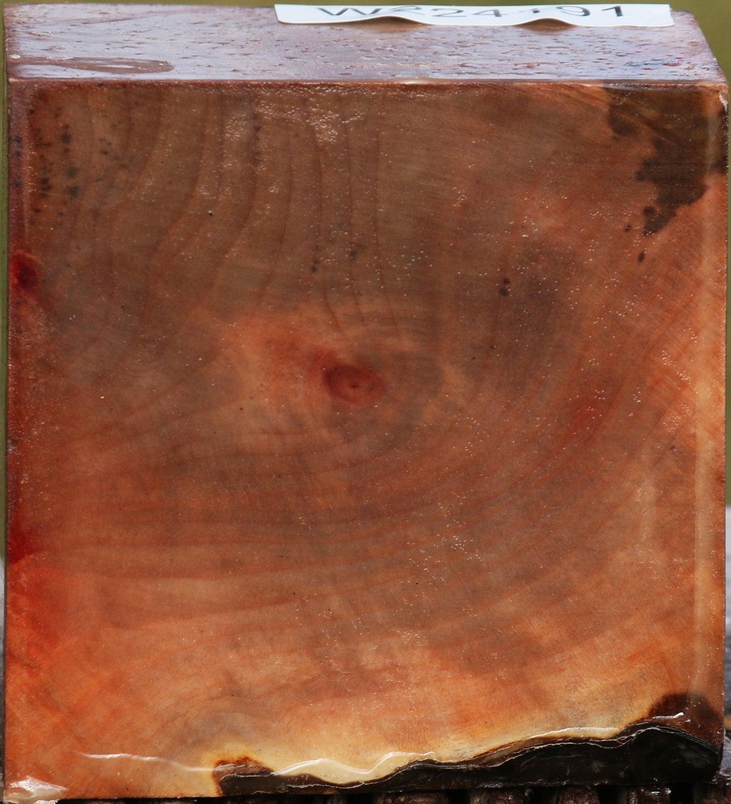 This Madrone burl turning stock has pinkish brown color and lots of interesting grain! Dark red streaks might be present in some pieces. Madrone is a Pacific Northwest hardwood that is very easy to work with, turning well & taking a high polish. This wood was freshly cut in December of 2024, pressure cooked, wax sealed, and is ready for twice turning. The internal stress has been removed through the pressure cooking process, but the wood does contain moisture and is considered freshly cut. Twice turning rather than air drying is recommended due to checking that occurs in this species. Keep the wax on this wood and start your twice turning within 60-90 days for best results. An occasional surface, edge, or burl eye check may be present. Rustic pieces contain many checks that will lend a unique look to projects. This is a gorgeous species that is well worth the extra effort! Also, you can turn creative and unique pieces that will morph into flowing lines as your bowl dries. Some pieces may have black colored surfaces that can penetrate 1/2". This piece has inclusions and a partial rough edge. Please see pictures for details