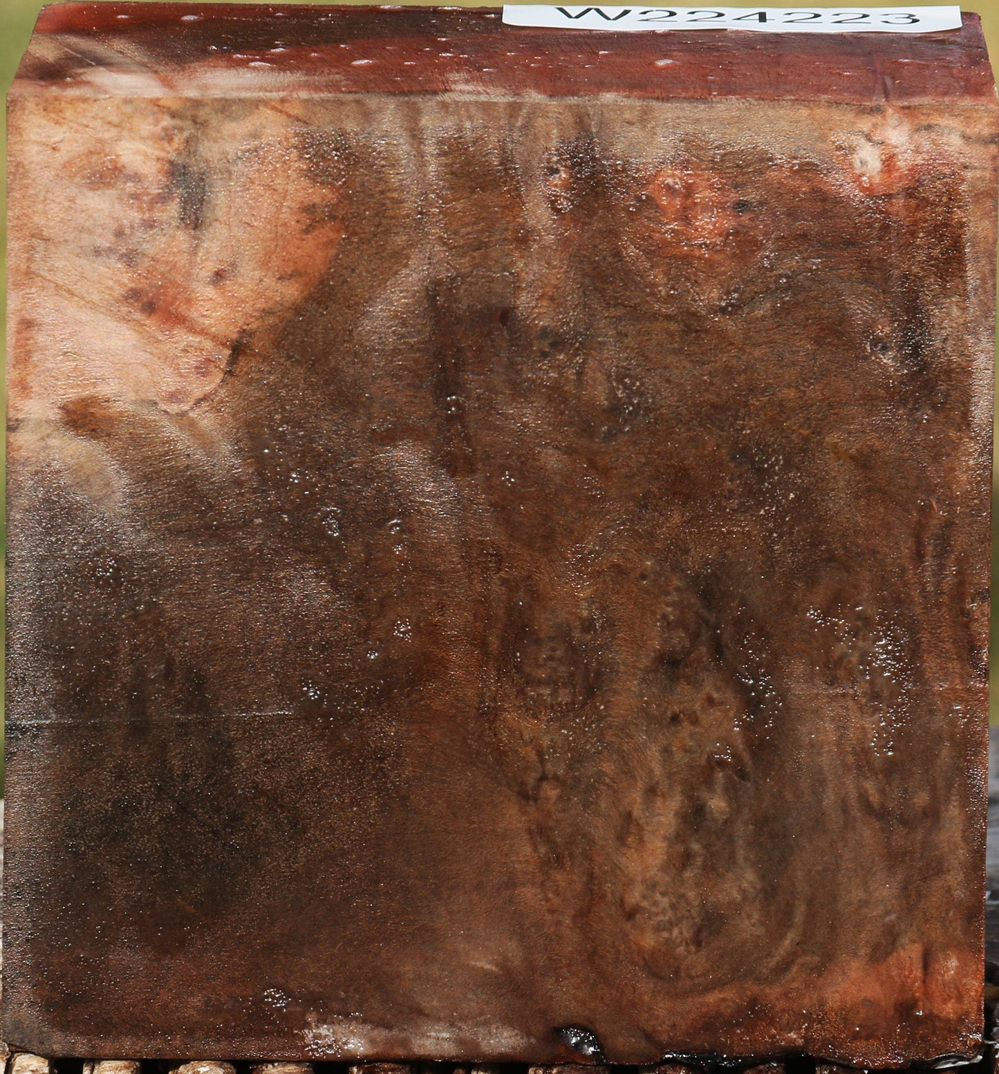 This Madrone burl turning stock has pinkish brown color and lots of interesting grain! Dark red streaks might be present in some pieces. Madrone is a Pacific Northwest hardwood that is very easy to work with, turning well & taking a high polish. This wood was freshly cut in December of 2024, pressure cooked, wax sealed, and is ready for twice turning. The internal stress has been removed through the pressure cooking process, but the wood does contain moisture and is considered freshly cut. Twice turning rather than air drying is recommended due to checking that occurs in this species. Keep the wax on this wood and start your twice turning within 60-90 days for best results. An occasional surface, edge, or burl eye check may be present. Rustic pieces contain many checks that will lend a unique look to projects. This is a gorgeous species that is well worth the extra effort! Also, you can turn creative and unique pieces that will morph into flowing lines as your bowl dries. Some pieces may have black colored surfaces that can penetrate 1/2". This piece has inclusions. Please see pictures for details