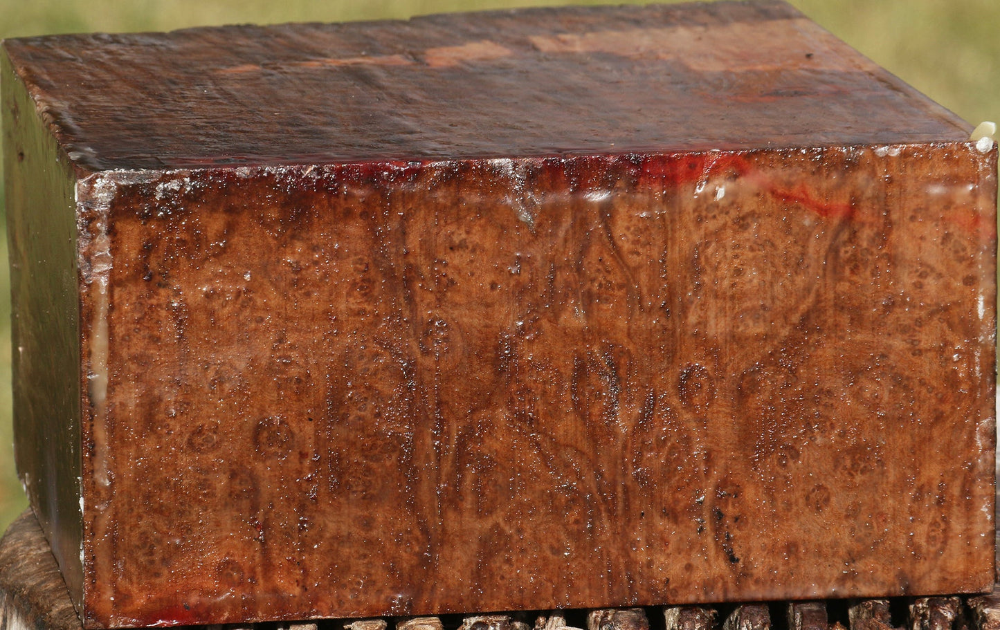 This Madrone burl turning stock has pinkish brown color and lots of interesting grain! Dark red streaks might be present in some pieces. Madrone is a Pacific Northwest hardwood that is very easy to work with, turning well & taking a high polish. This wood was freshly cut in December of 2024, pressure cooked, wax sealed, and is ready for twice turning. The internal stress has been removed through the pressure cooking process, but the wood does contain moisture and is considered freshly cut. Twice turning rather than air drying is recommended due to checking that occurs in this species. Keep the wax on this wood and start your twice turning within 60-90 days for best results. An occasional surface, edge, or burl eye check may be present. Rustic pieces contain many checks that will lend a unique look to projects. This is a gorgeous species that is well worth the extra effort! Also, you can turn creative and unique pieces that will morph into flowing lines as your bowl dries. Some pieces may have black colored surfaces that can penetrate 1/2". This piece has inclusions. Please see pictures for details