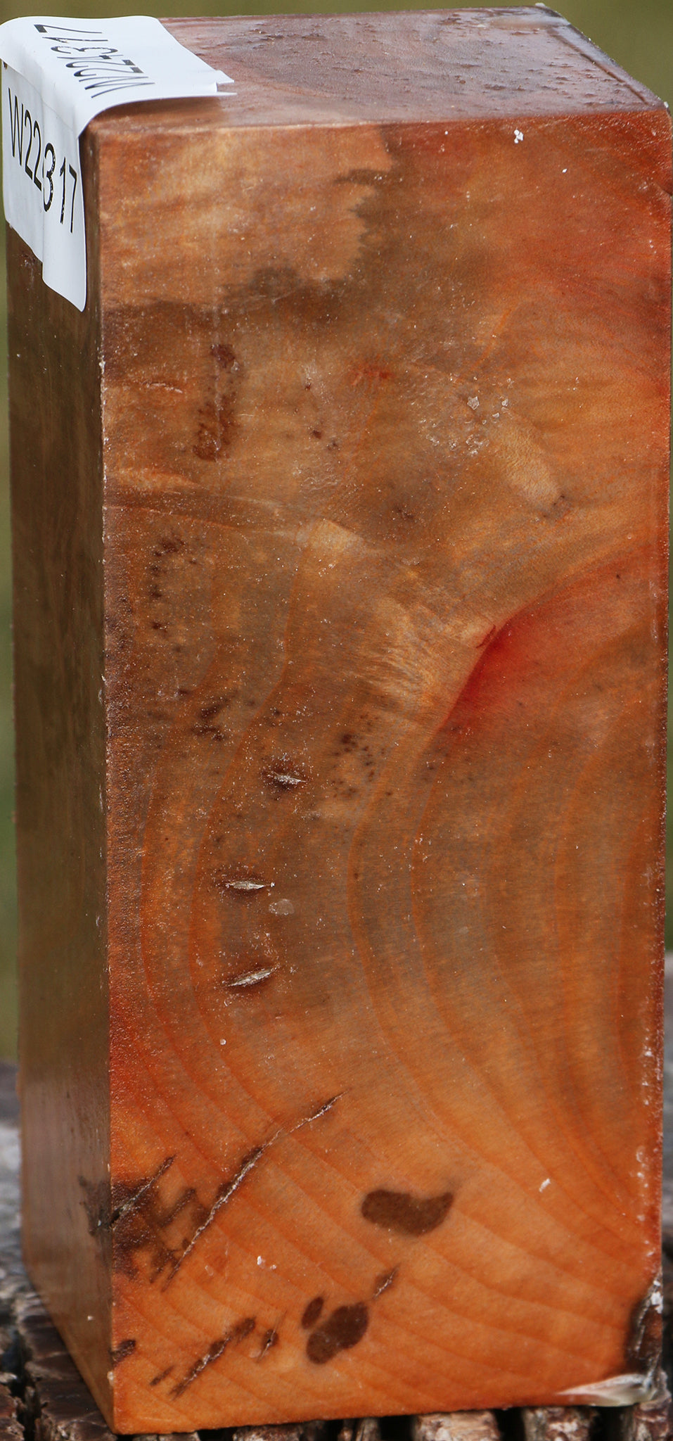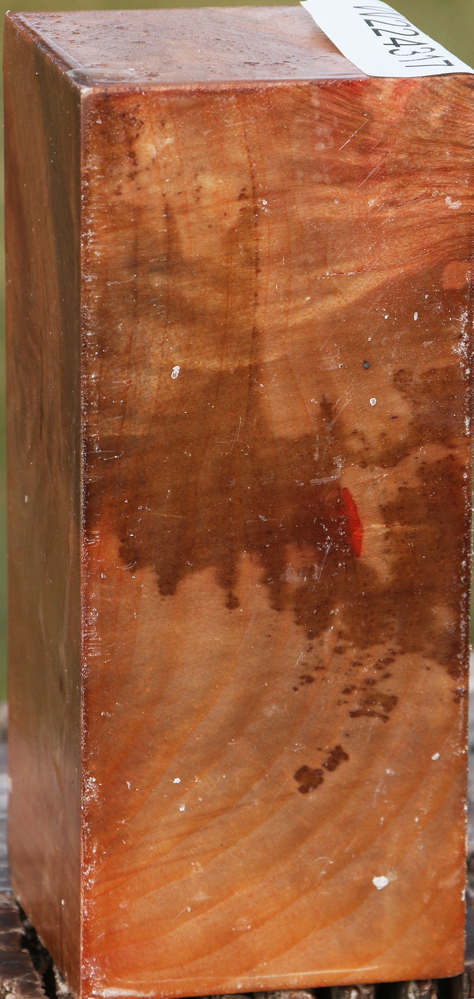 This Madrone burl turning stock has pinkish brown color and lots of interesting grain! Dark red streaks might be present in some pieces. Madrone is a Pacific Northwest hardwood that is very easy to work with, turning well & taking a high polish. This wood was freshly cut in December of 2024, pressure cooked, wax sealed, and is ready for twice turning. The internal stress has been removed through the pressure cooking process, but the wood does contain moisture and is considered freshly cut. Twice turning rather than air drying is recommended due to checking that occurs in this species. Keep the wax on this wood and start your twice turning within 60-90 days for best results. An occasional surface, edge, or burl eye check may be present. Rustic pieces contain many checks that will lend a unique look to projects. This is a gorgeous species that is well worth the extra effort! Also, you can turn creative and unique pieces that will morph into flowing lines as your bowl dries. Some pieces may have black colored surfaces that can penetrate 1/2". This piece has inclusions. Please see pictures for details