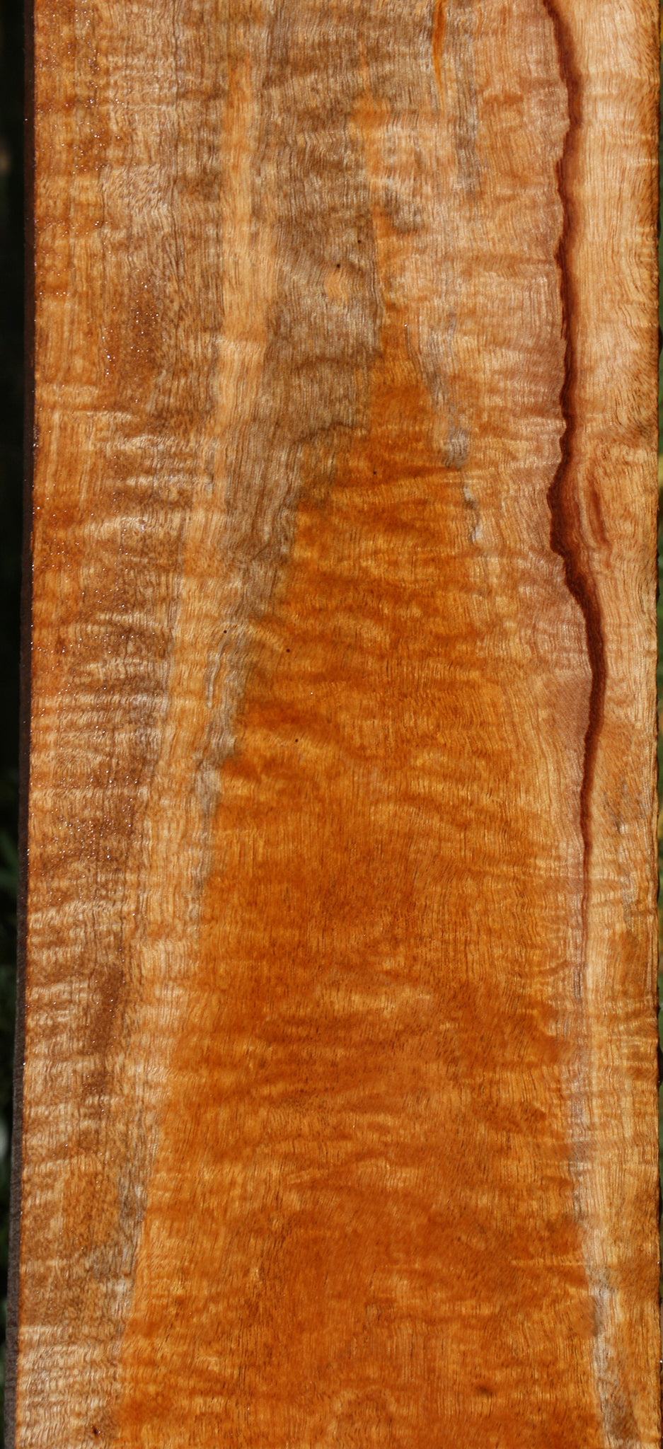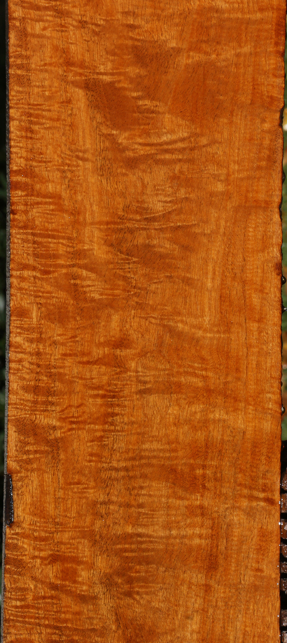 This figured Honduras Mahogany lumber has rich, warm honey-brown colors with beautiful fiddleback. It machines, glues, and finishes extremely well! This kiln dried, surfaced lumber will be great for fine boxes, furniture, and many other uses, including musical instruments! A 1/16" to 1/8" bow may be present in boards over 36" long. An occasional surface check may be present. This will definitely add a touch of class to your woodworking! Ships to the USA only. This piece has bug holes, a rough corner, and machine marks on one edge. Please see pictures for details.