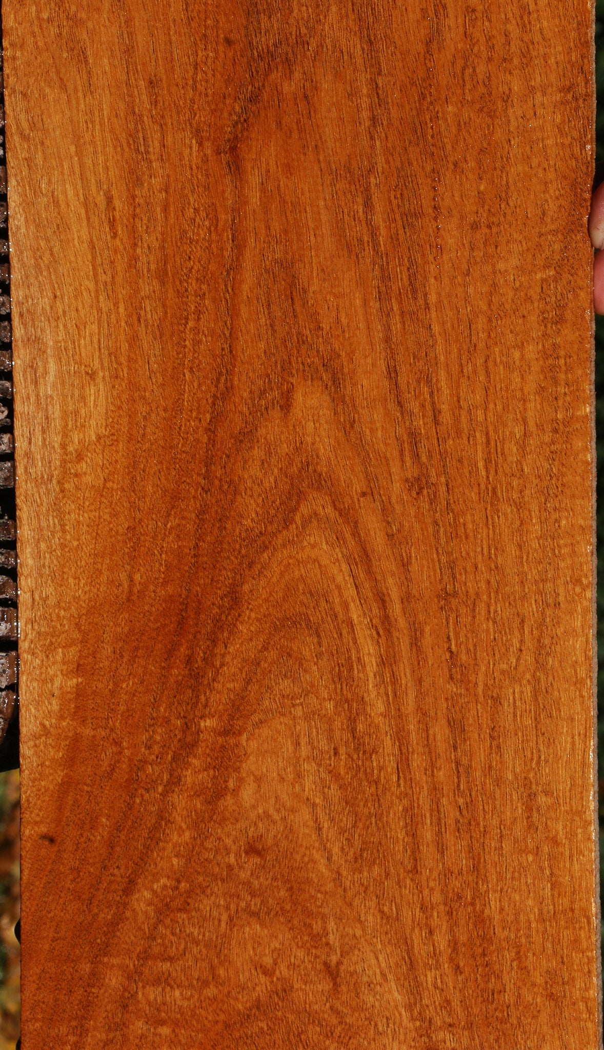 This figured Honduras Mahogany lumber has rich, warm honey-brown colors with beautiful fiddleback. It machines, glues, and finishes extremely well! This kiln dried, surfaced lumber will be great for fine boxes, furniture, and many other uses, including musical instruments! A 1/16" to 1/8" bow may be present in boards over 36" long. An occasional surface check may be present. This will definitely add a touch of class to your woodworking! Ships to the USA only. This piece has a partial rough edge. Please see pictures for details.