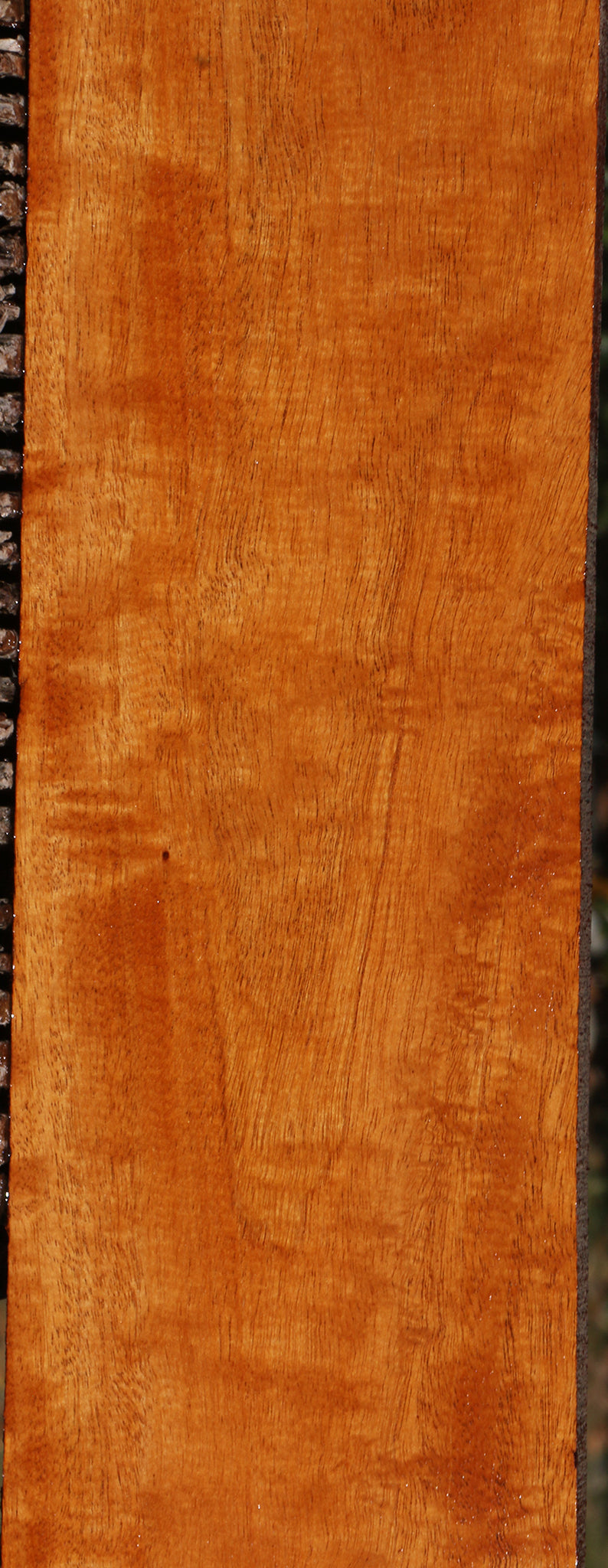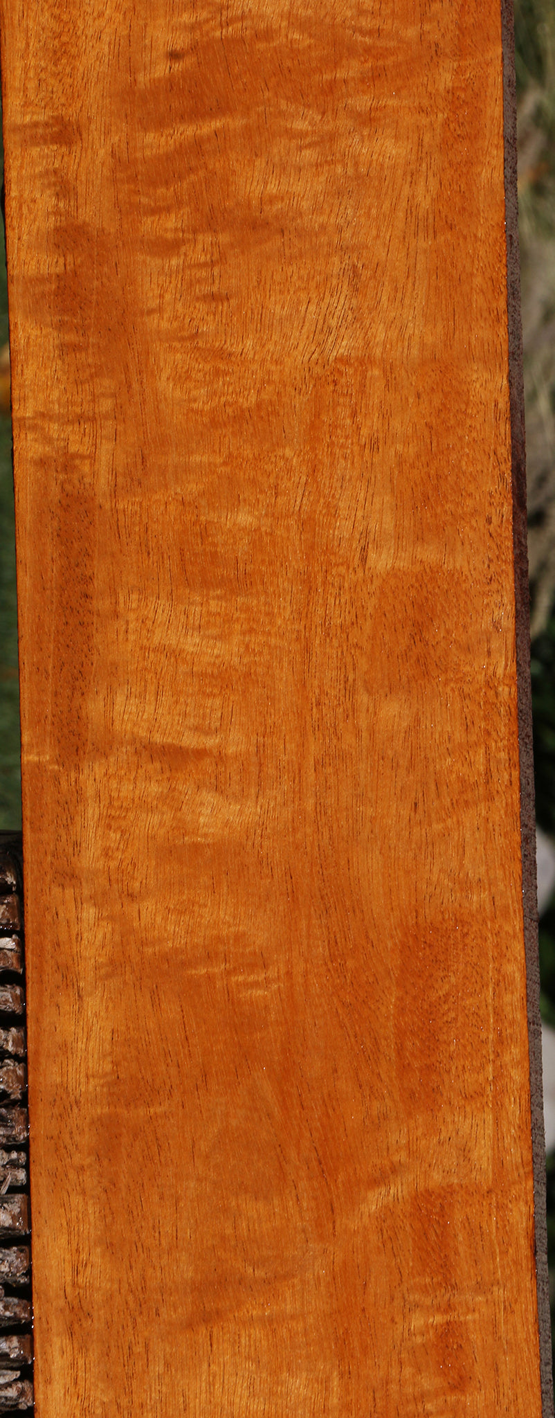 This figured Honduras Mahogany lumber has rich, warm honey-brown colors with beautiful fiddleback. It machines, glues, and finishes extremely well! This kiln dried, surfaced lumber will be great for fine boxes, furniture, and many other uses, including musical instruments! A 1/16" to 1/8" bow may be present in boards over 36" long. An occasional surface check may be present. This will definitely add a touch of class to your woodworking! Ships to the USA only. This piece has bug holes. Please see pictures for details.