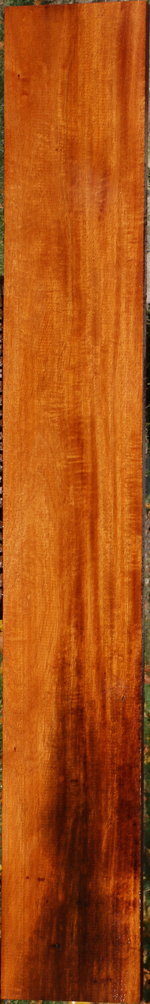 This figured Honduras Mahogany lumber has rich, warm honey-brown colors with beautiful fiddleback. It machines, glues, and finishes extremely well! This kiln dried, surfaced lumber will be great for fine boxes, furniture, and many other uses, including musical instruments! A 1/16" to 1/8" bow may be present in boards over 36" long. An occasional surface check may be present. This will definitely add a touch of class to your woodworking! Ships to the USA only. This piece has inclusions. Please see pictures for details.