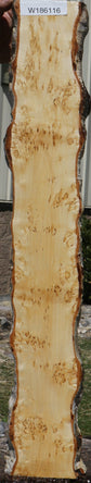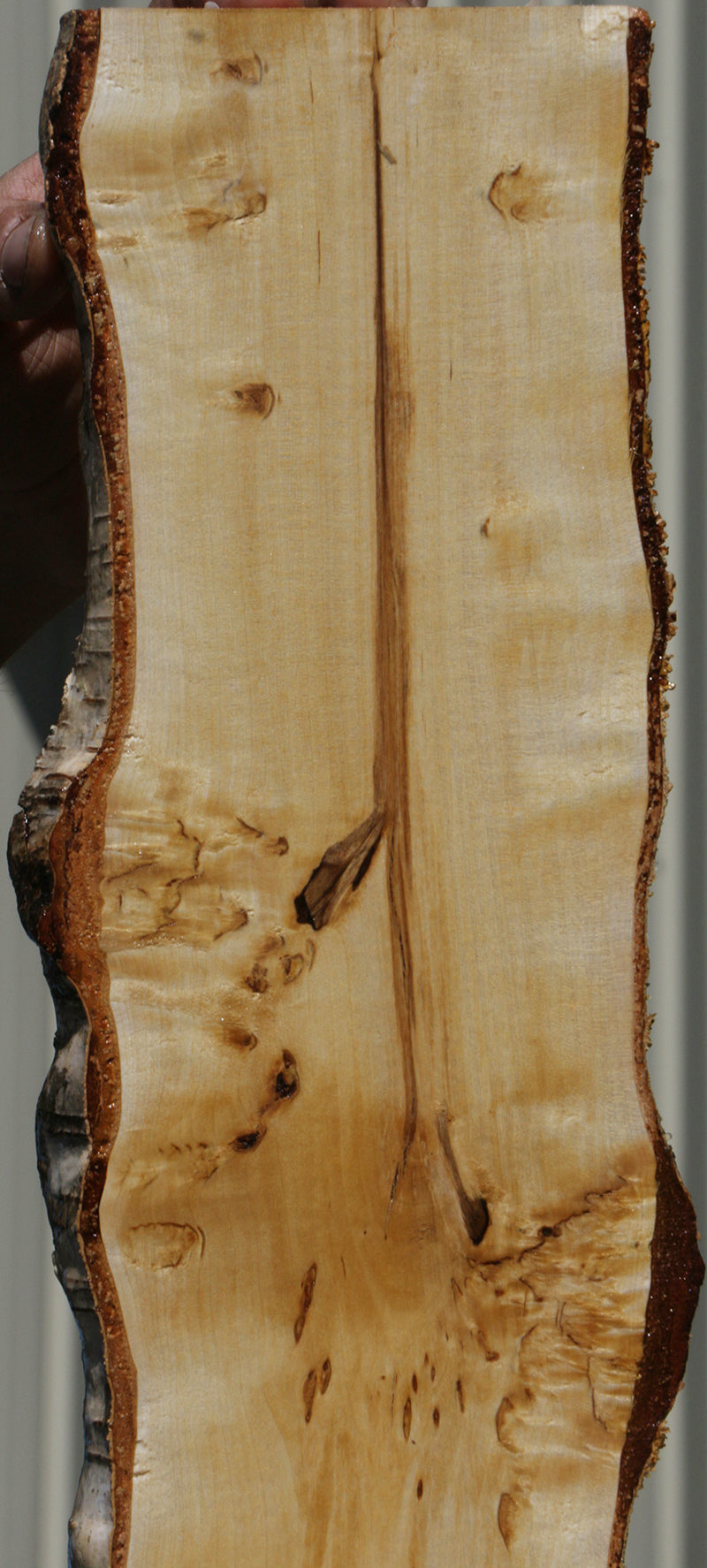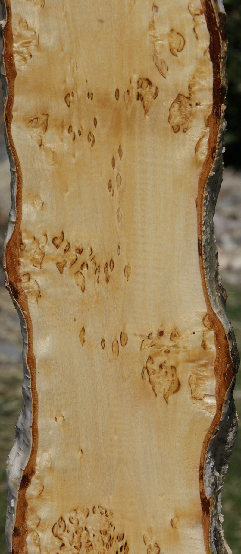Masur Birch is an excellent choice for many different projects! Most of the wood has nice figuring that is very similar to burl or birdseye Maple though of a different origin. The creamy, golden color with dark brown streaking yields stunning contrast for specialty and decorative items. Pieces with wild figure may have some bark incursions. A minor check or pin knot may be present. Workability of this very rare wood is excellent. Our material is kiln dried and ready to use. Live bark edges are present on some pieces.