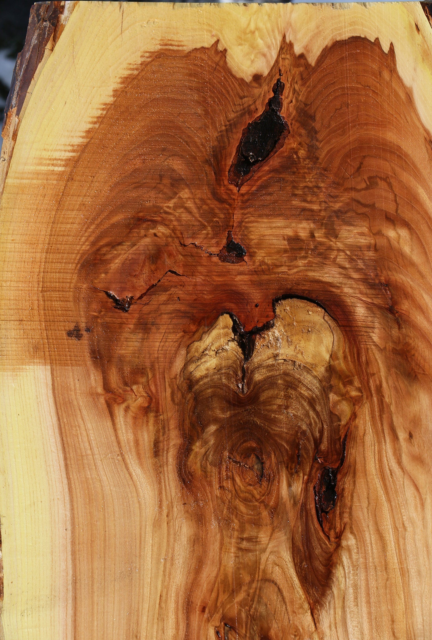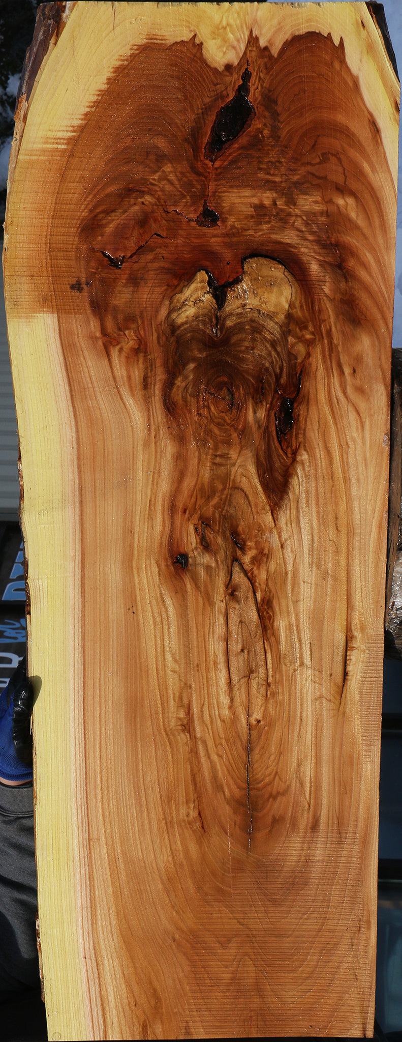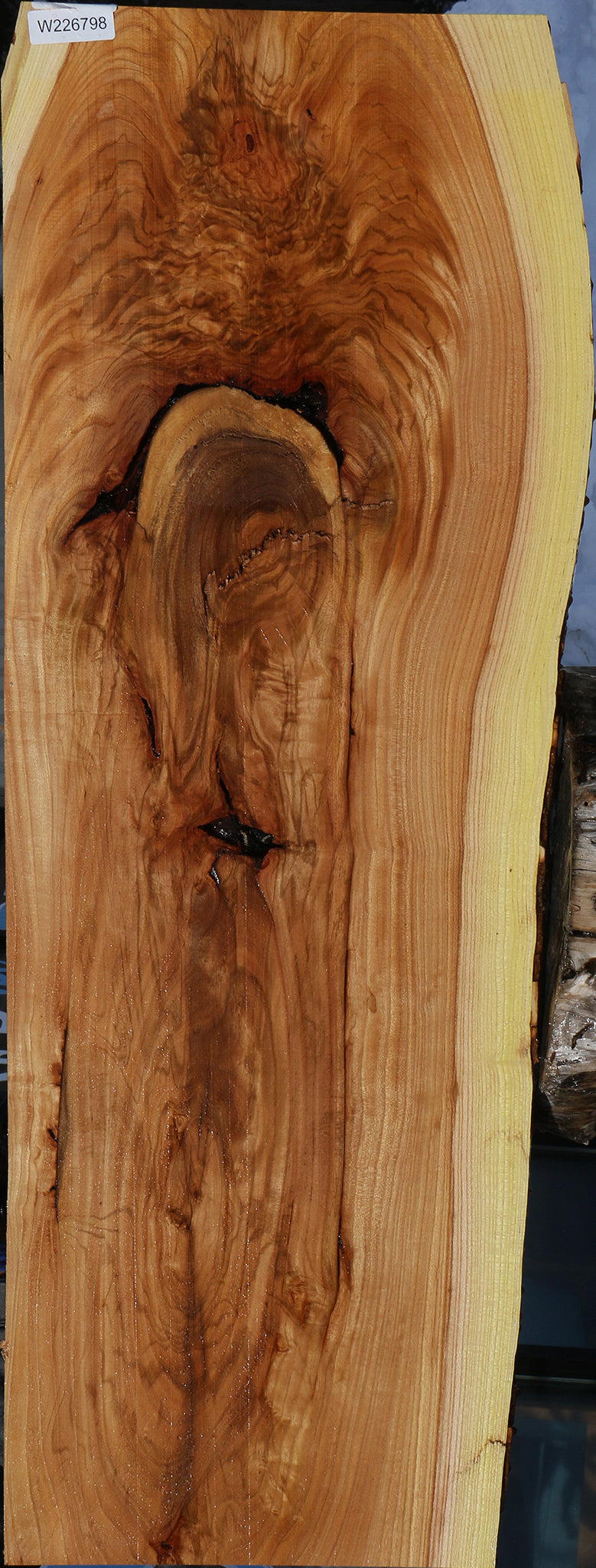 This piece has been kiln dried, surfaced on two sides, and is ready for use. This piece has splits, inclusions, and checks. Please see pictures for details.