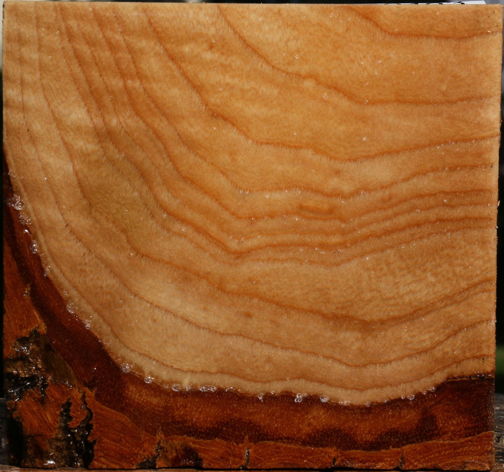 This turning wood was cut from an urban salvaged Modesto Ash log with lots of fiddleback. It is ideal for twice turning as it is freshly cut. It has been completely sealed in wax. A minor end check or surface check may be present. You'll love the easy workability of this affordable wood and the nice finish that it yields. This piece has a partial live edge. Please see pictures for details.