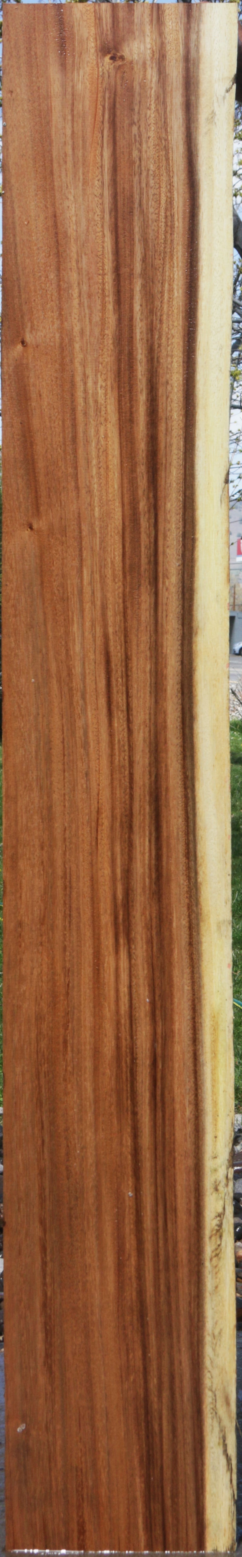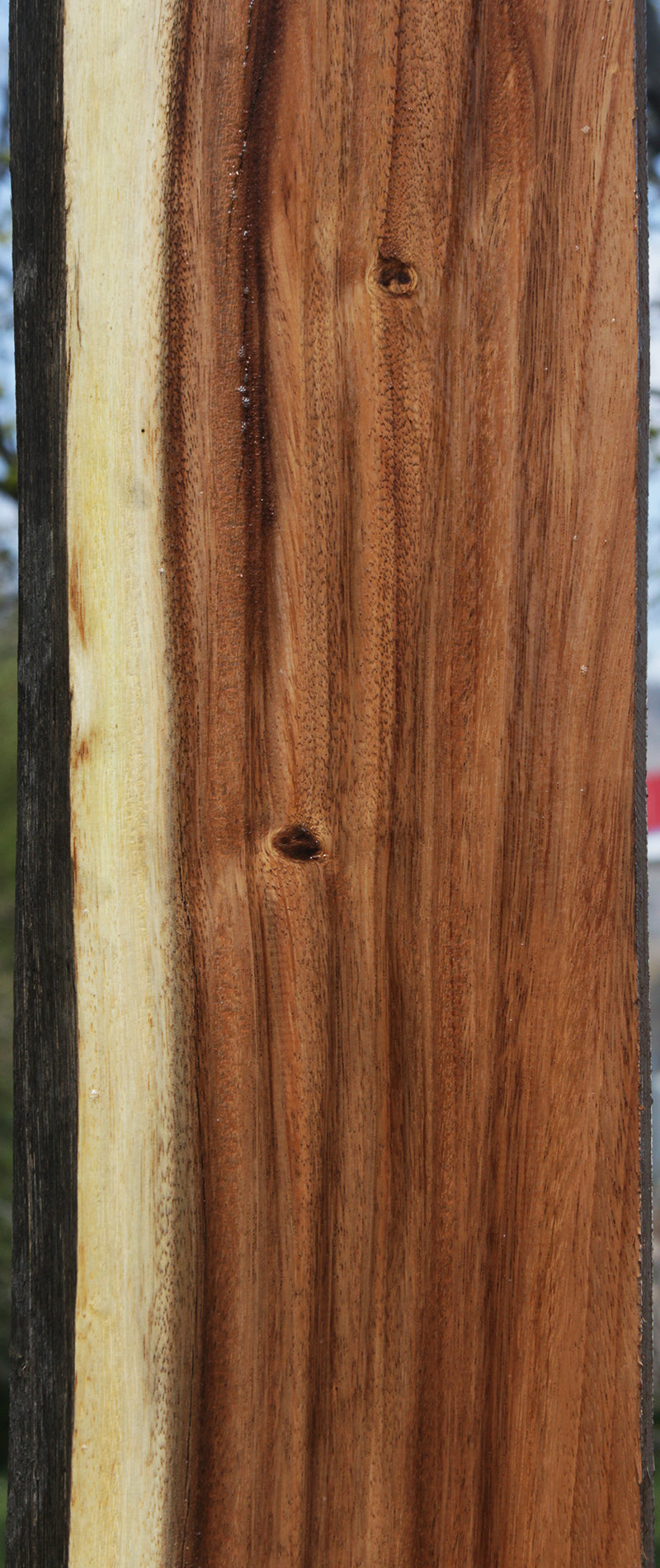 This stunning Monkeypod has incredible color contrast and patterns! This material is kiln dried and surfaced on two sides. There might be a 1/16" to 1/8" cup present. Live edges may contain checks.