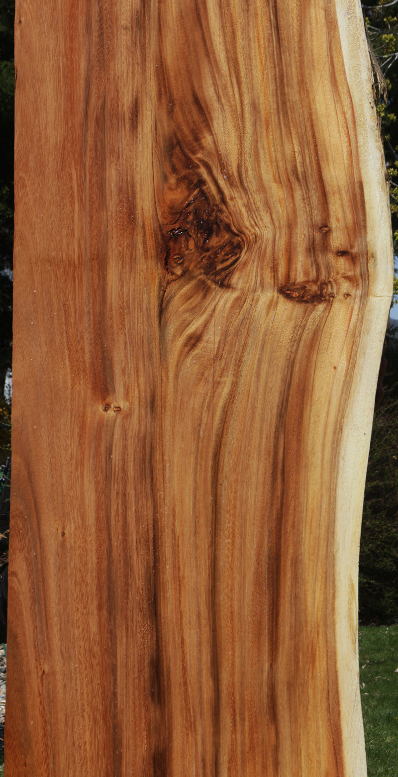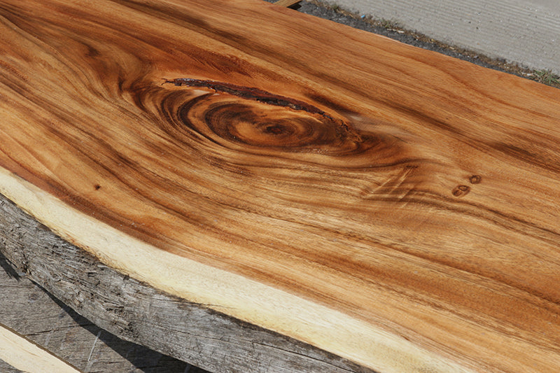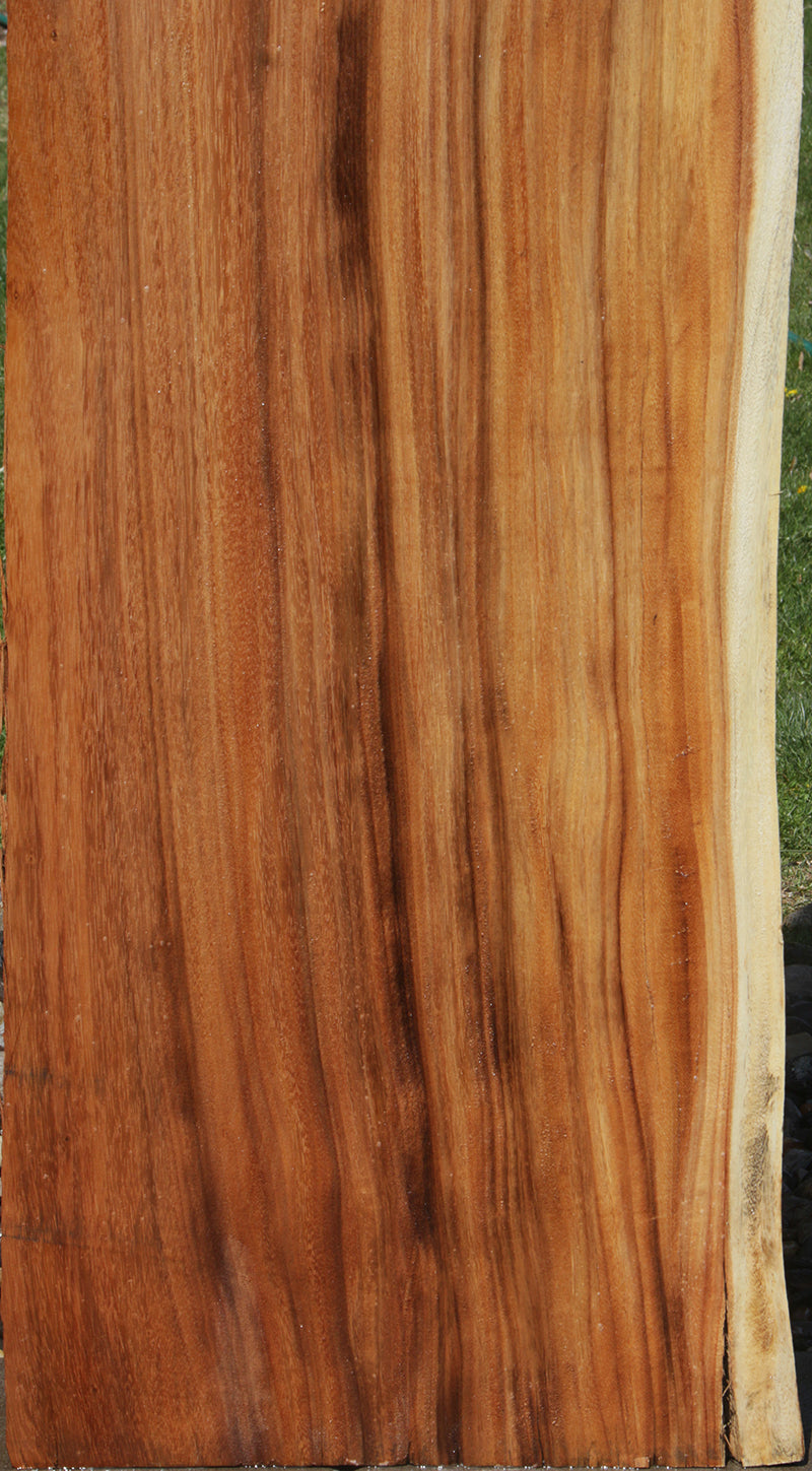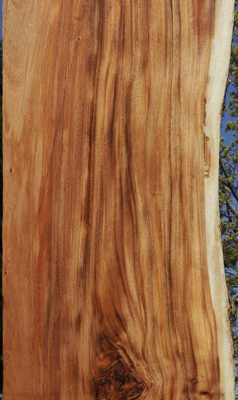 This stunning Monkeypod has incredible color contrast and patterns! This material is kiln dried and surfaced on two sides. There might be a 1/16" to 1/8" cup present. Live edges may contain checks. Numerous checks on face