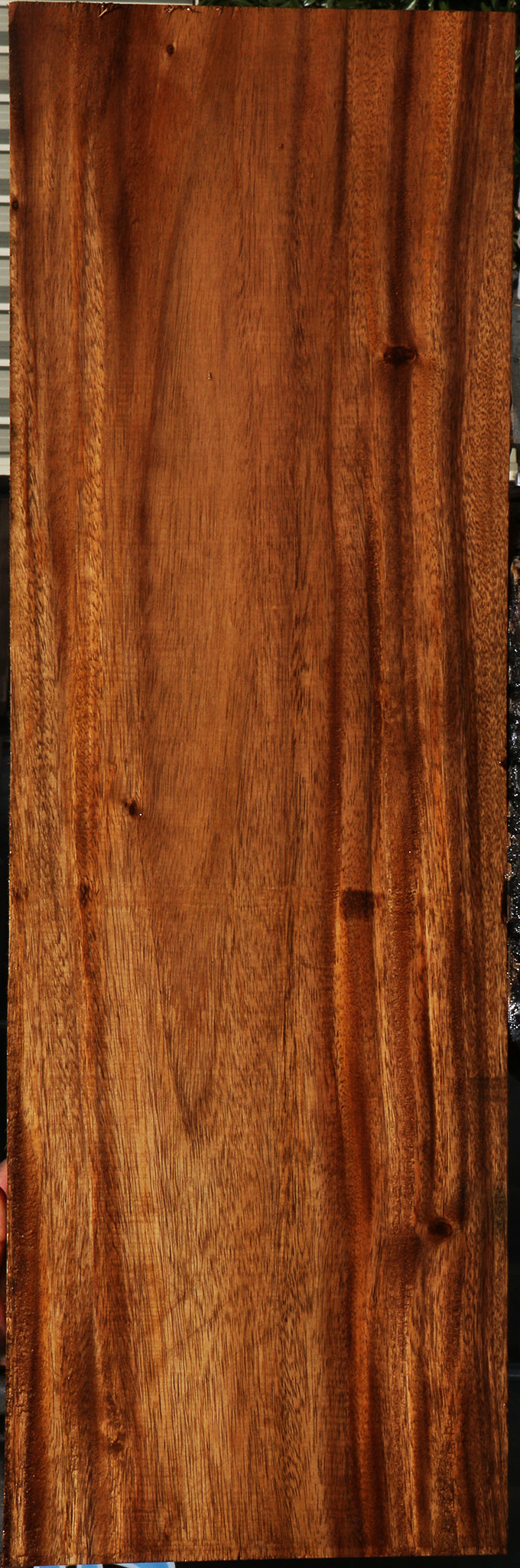 This stunning Monkeypod has incredible color contrast and patterns! This material is kiln dried and surfaced on two sides. There might be a 1/16" to 1/8" cup/bow present on boards 24" to 60". Boards over 60" may have 1/8" to 1/4" cup/bow. Live edges may contain checks and pin holes. Monkeypod has incredible color, warmth, and depth. It's one of our favorites! This piece has knots. Please see pictures for details.