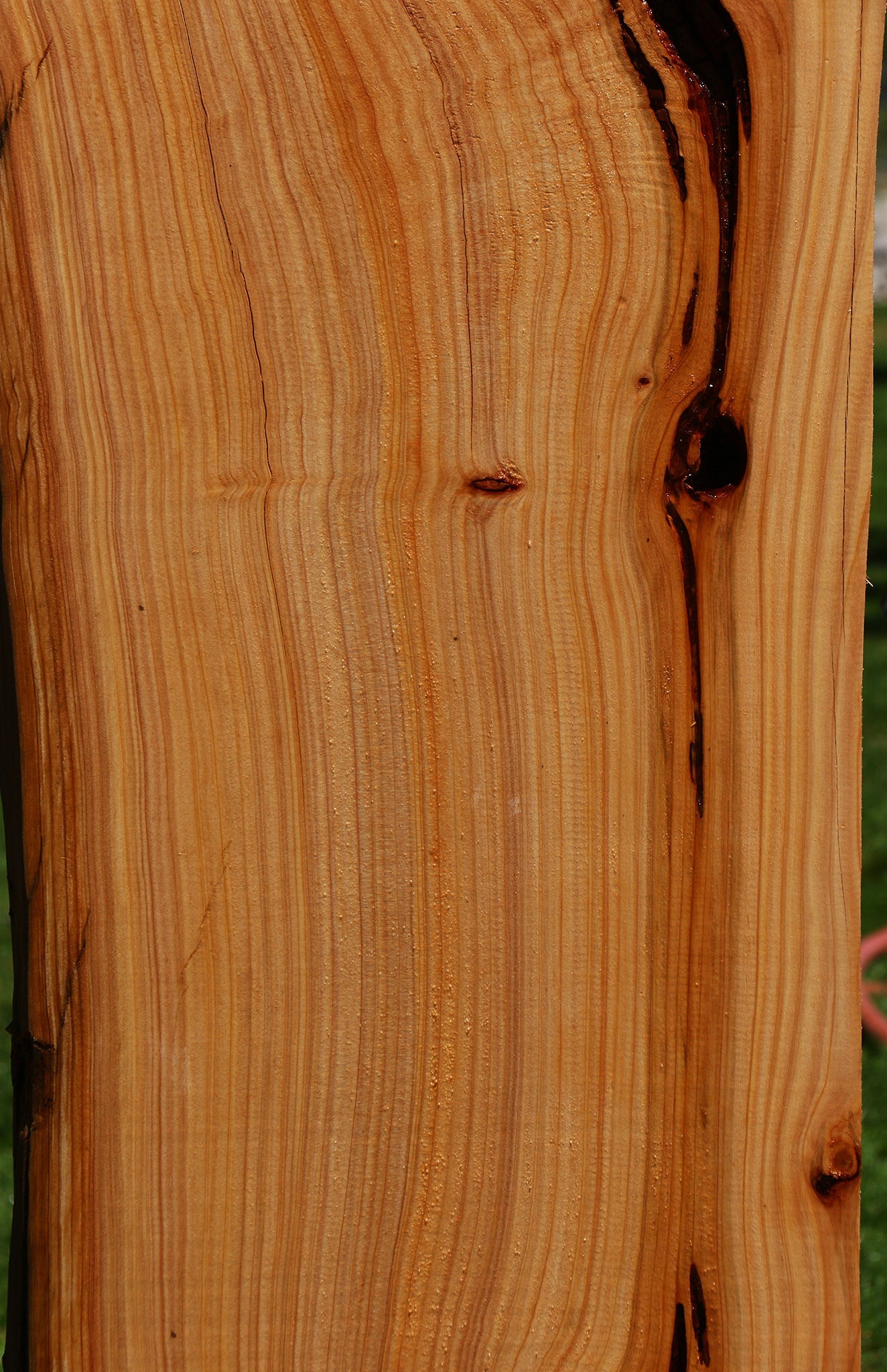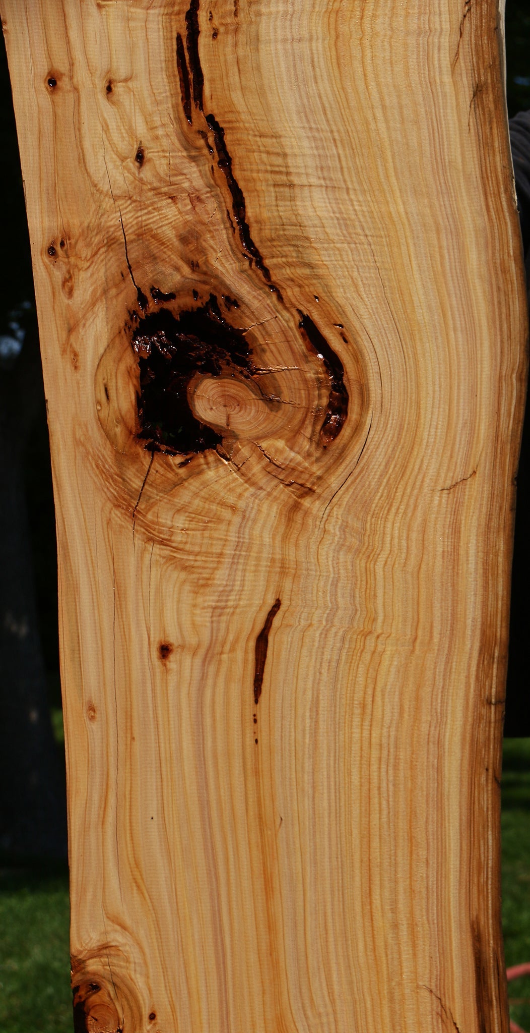 Crafted from carefully seasoned Monterey Cypress logs, this lumber has been expertly milled, kiln-dried, and surfaced on two sides for optimal quality and workability. Many boards feature beautiful, natural figure that adds character to any project. While occasional minor checks may appear at the ends or on the surface, the majority of boards are clean and defect-free. Boards over 36" may have a slight bow or twist (1/16" to 1/8"). This lumber is perfect for furniture making, cabinetry, and many other custom woodworking projects. This piece has splits, a void, inclusions, and pecky areas. Please see pictures for details.