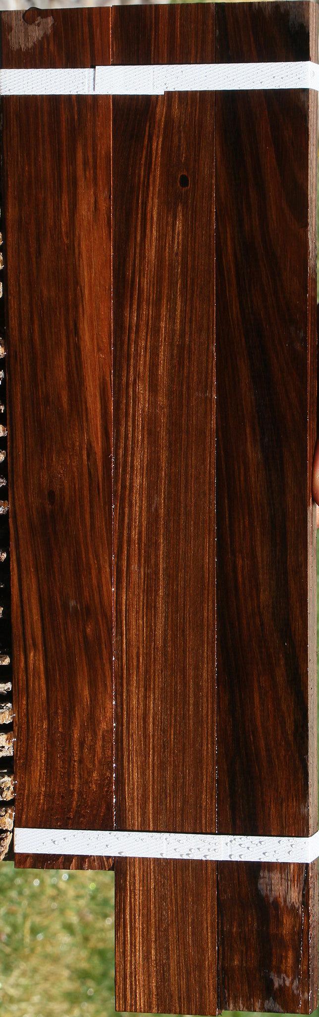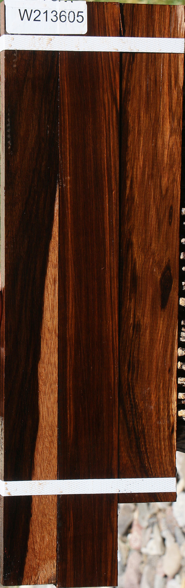 Monterillo Rosewood exhibits dark stripes through a honey brown background. It resembles striped Ebony as opposed to the Southern variety of Monterillo Rosewood that resembles Brazilian Rosewood. This hardwood produces a beautiful finish. Boards over 36" may have a slight 1/16" to 1/8" crown. This high quality, kiln dried lumber has been surfaced on two sides and is ready for your wonderful creations. This is our last batch of this specialty hardwood! This is a 3-piece set. The measurements above are for the shipping size. Please note the individual measurements. Piece 1 measures 18-1/2" x 1-11/16" x 3/4". Piece 2 measures 18-5/8" x 1-15/16" x 3/4". Piece 3 measures 16" x 1-7/8" x 13/16".