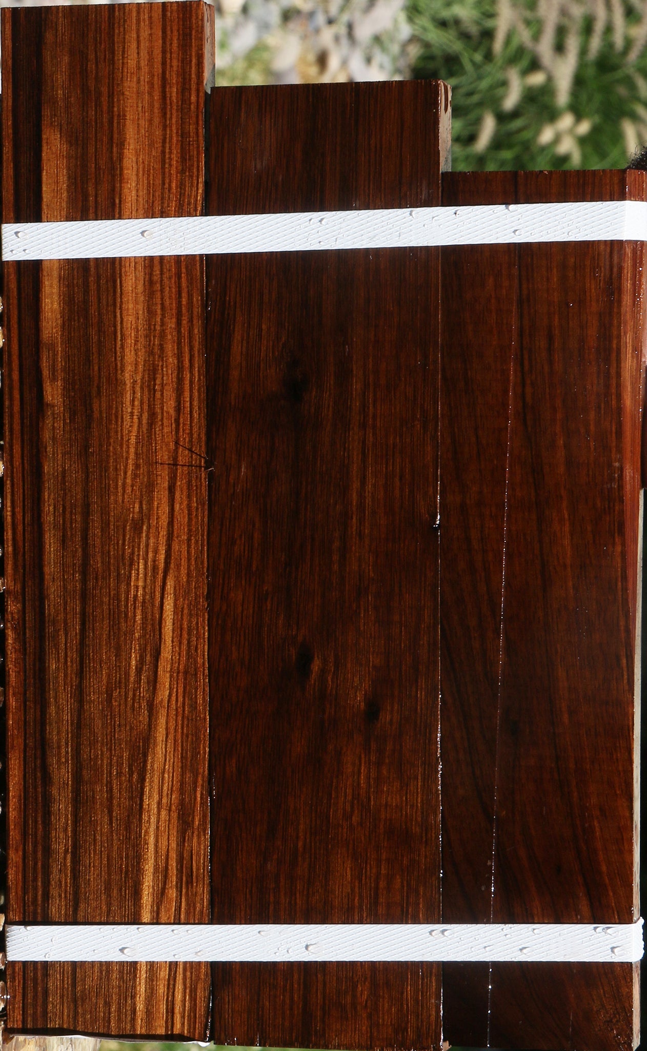 Monterillo Rosewood exhibits dark stripes through a honey brown background. It resembles striped Ebony as opposed to the Southern variety of Monterillo Rosewood that resembles Brazilian Rosewood. This hardwood produces a beautiful finish. Boards over 36" may have a slight 1/16" to 1/8" crown. This high quality, kiln dried lumber has been surfaced on two sides and is ready for your wonderful creations. This is our last batch of this specialty hardwood! This is a 3-piece set. The measurements above are for the shipping size. Please note the individual measurements. Piece 1 measures 13-1/16" x 2-5/8" x 5/8". Piece 2 measures 12-1/16" x 2-7/8" x 13/16". Piece 3 measures 10-13/16" x 2-5/16" x 3/4". One or more of these pieces has inclusions. Please see pictures for details.
