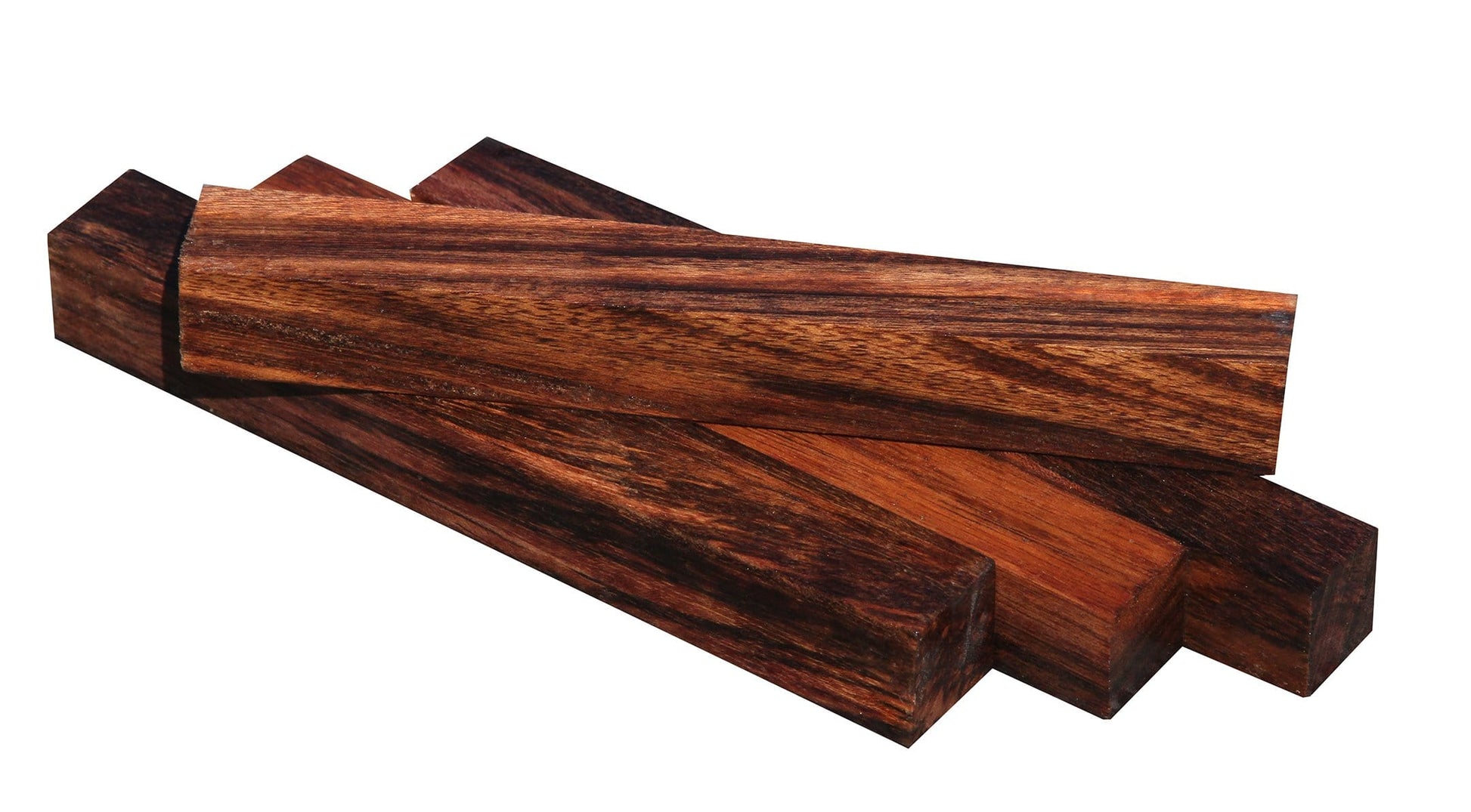 The measurements above are for the shipping size. Each individual blank measures 6" x 3/4" x 3/4" (several blanks are shown to indicate the range of color/grain to expect). These pen blanks are generally air dried but may contain some residual moisture. This material has nice color contrast warm color tones. It is somewhat resistant to finishing due to the oily properties of the wood. A natural wax finish would be ideal for your turning projects or finishes that are used on Rosewoods would also complement this wood nicely. Skill level: Intermediate.