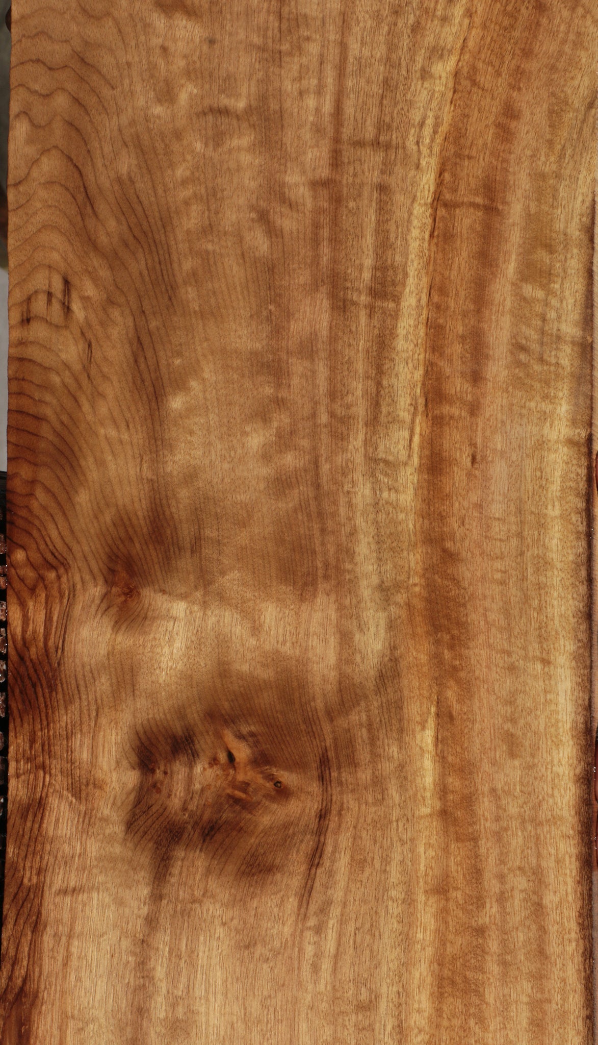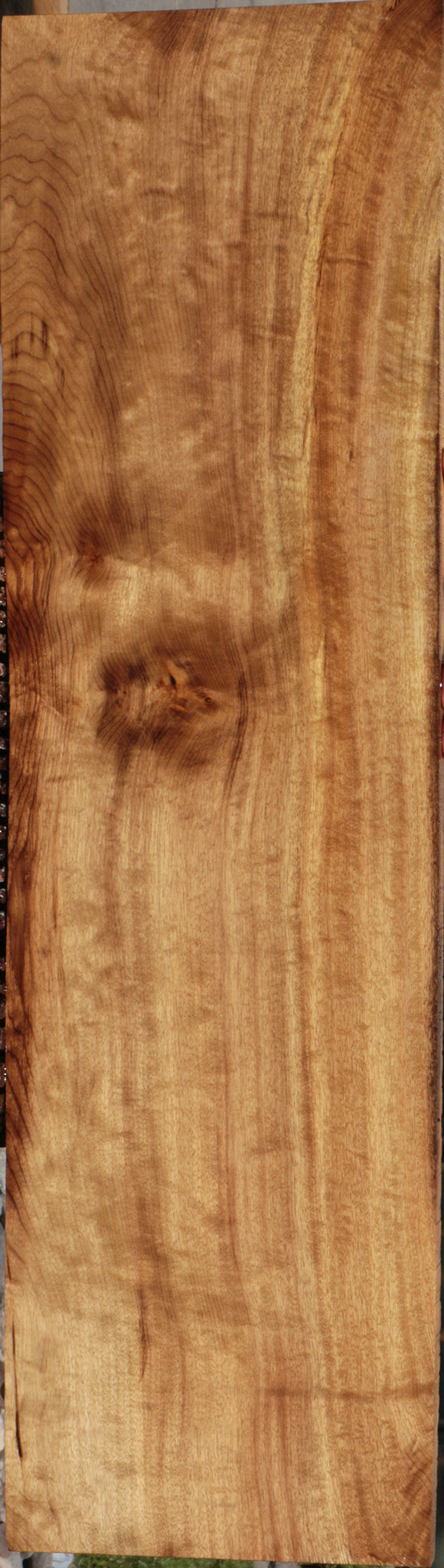 This figured Oregon Myrtlewood lumber was cut for high end woodworking projects from an exceptionally figured & colorful log! Patterns range from exhibition grade fiddleback to amazing color contrast with all combinations in between! Oregon Myrtlewood is an exceptional choice due to its easy workability. This stock is kiln dried, surfaced on two sides, and ready to use. Boards over 36" may have a 1/16" to 1/8" bow/twist. A minor end/surface check or small pin hole may be present. This piece has inclusions. Please see pictures for details.