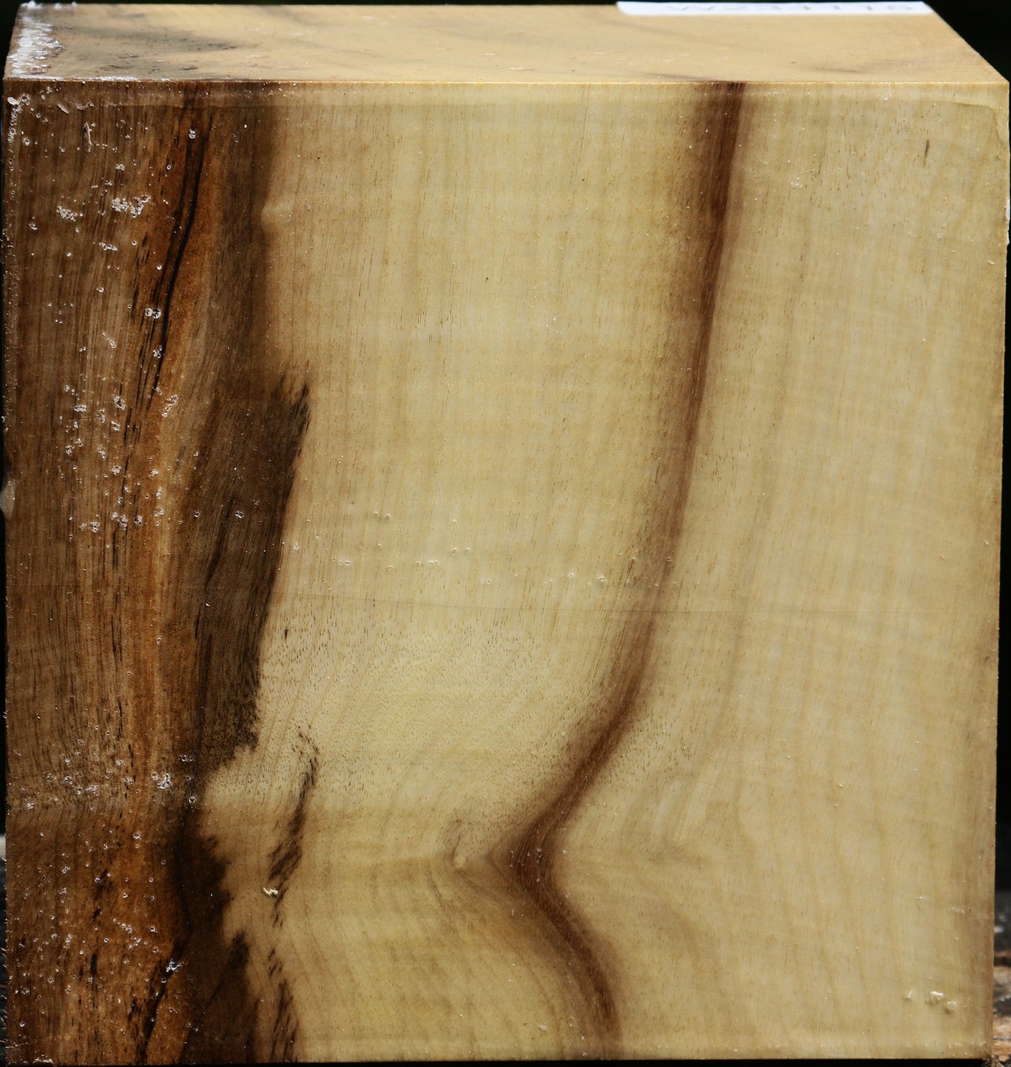 This colorful, specialty Oregon Myrtlewood has a range of color and fiddleback. The wood was cut in June of 2025, completely wax sealed, and is still considered freshly cut. All pieces are completely wax sealed. There may be a small pin knot, check, or inclusion present. Oregon Myrtlewood is a wonderful choice for woodturning due to its easy workability and exceptionally high polish. Do not miss this beautiful turning wood. The chatoyance and iridescent shimmer in this species will make your projects absolutely top notch.