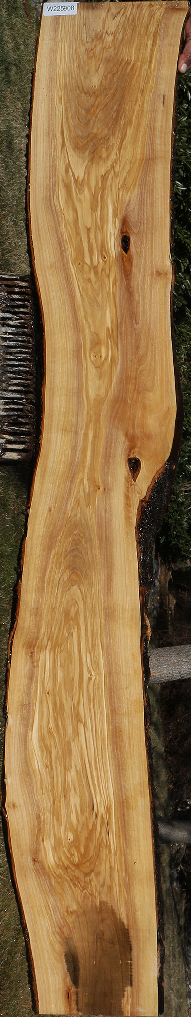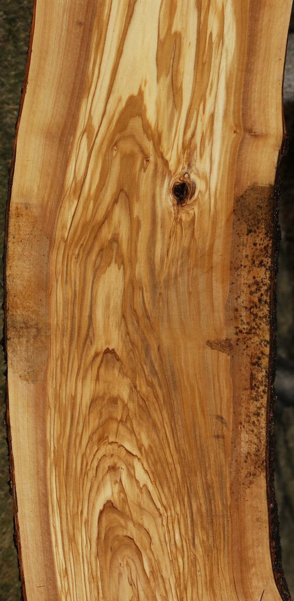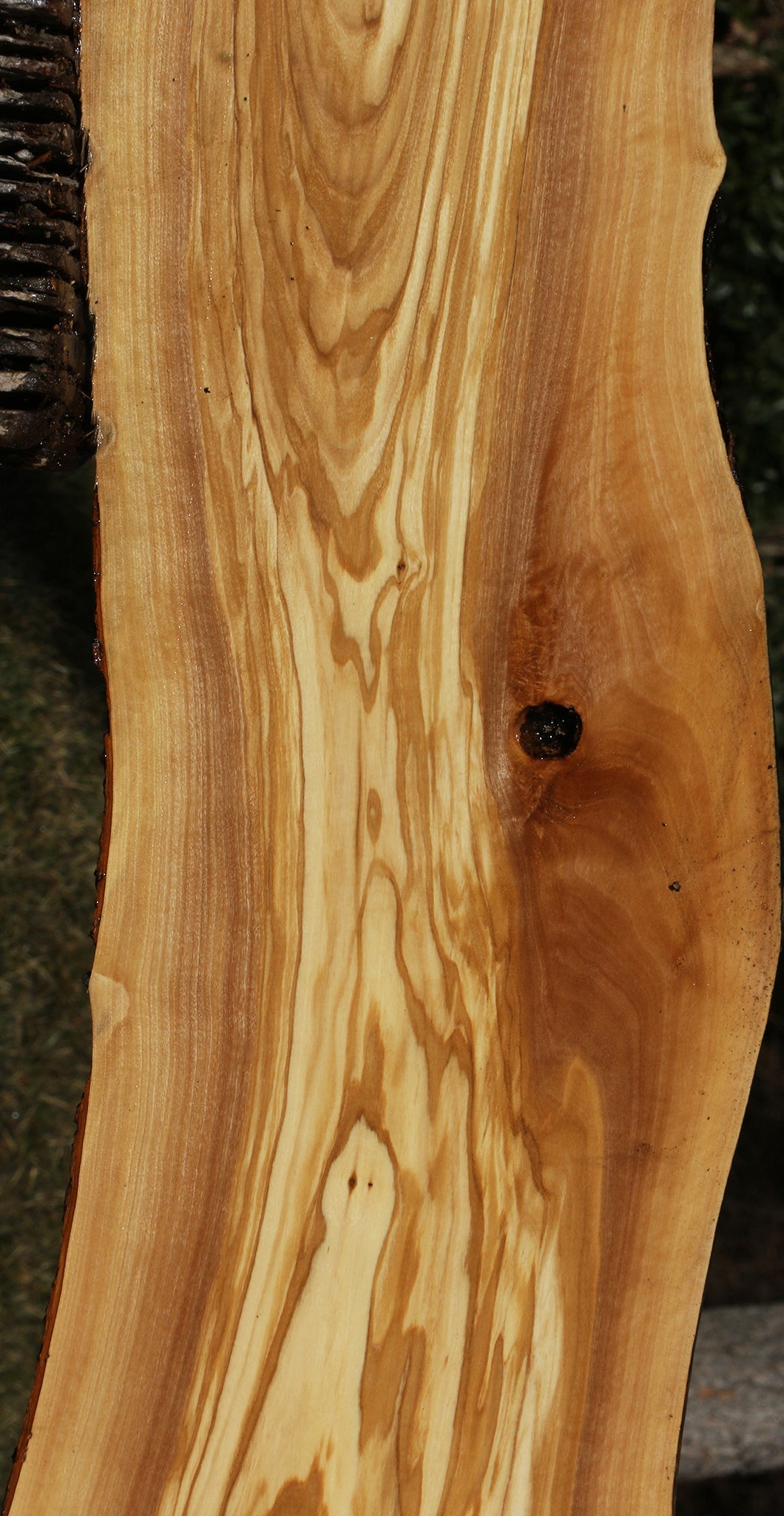 This beautiful batch of Italian Olive lumber has a range of figure, color, and lovely grain. Kiln dried and surfaced on both sides, the wood is ready for use now. Occasional checks and knots may be present. The wood is 95% free of defects or better. 1/16" to 1/8" bow/twist may be present in boards over 36". Ends have been wax sealed. Italian Olive is a great wood for charcuterie boards, cheese trays, and cutting boards! This piece has inclusions and planer skip. Please see pictures for details.