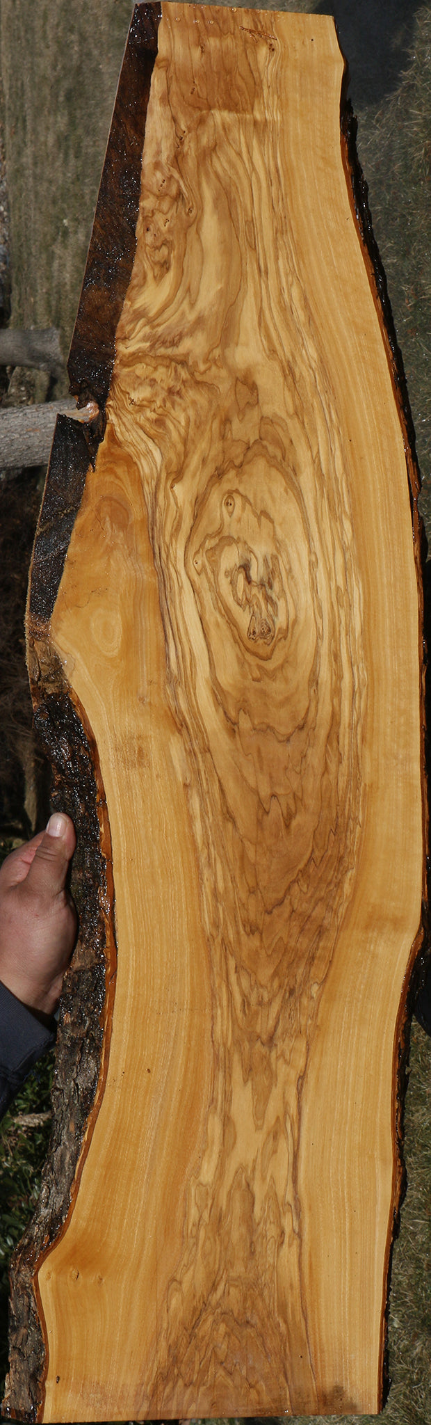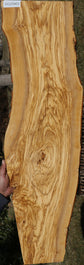 This beautiful batch of Italian Olive lumber has a range of figure, color, and lovely grain. Kiln dried and surfaced on both sides, the wood is ready for use now. Occasional checks and knots may be present. The wood is 95% free of defects or better. 1/16" to 1/8" bow/twist may be present in boards over 36". Ends have been wax sealed. Italian Olive is a great wood for charcuterie boards, cheese trays, and cutting boards! This piece has inclusions. Please see pictures for details.