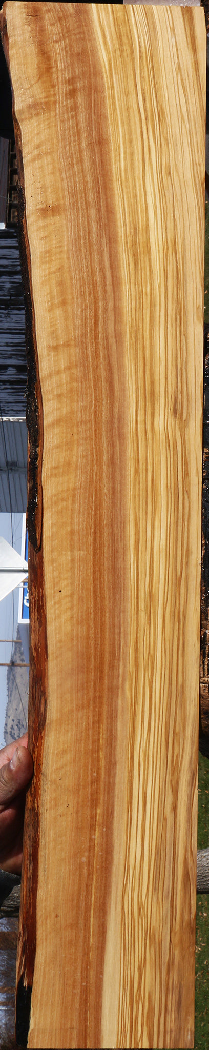 This stunning batch of Italian Olive lumber showcases a rich variety of figure, vibrant color, and elegant grain patterns. Kiln-dried and surfaced on both sides, these boards are ready to use right away. Some pieces may feature natural live edges, small checks, or knots, adding to their unique character. Boards over 36" may have a slight bow or twist (1/16" to 1/8"). Italian Olive is an excellent choice for charcuterie boards, cheese trays, cutting boards, and other handcrafted projects!