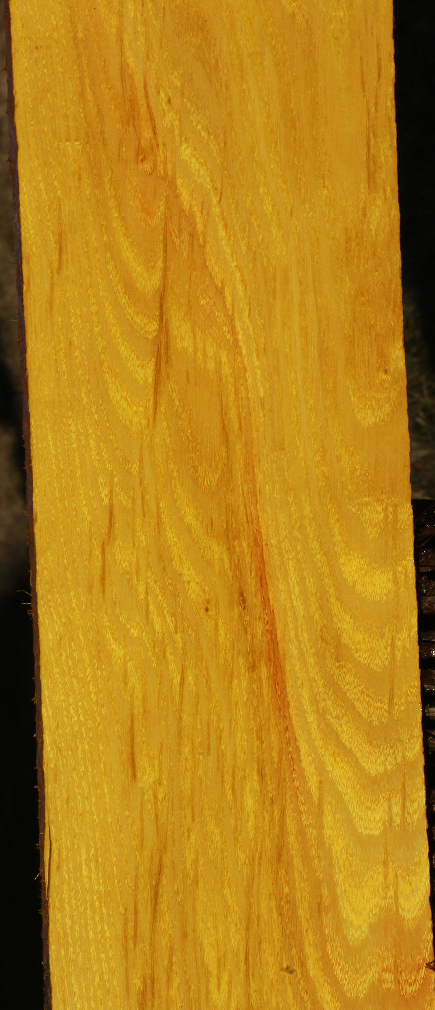 This Osage Orange material has incredible golden to bright yellow color! As it ages and picks up UV light, it turns into a medium brown/orange color. An occasional minor check...
