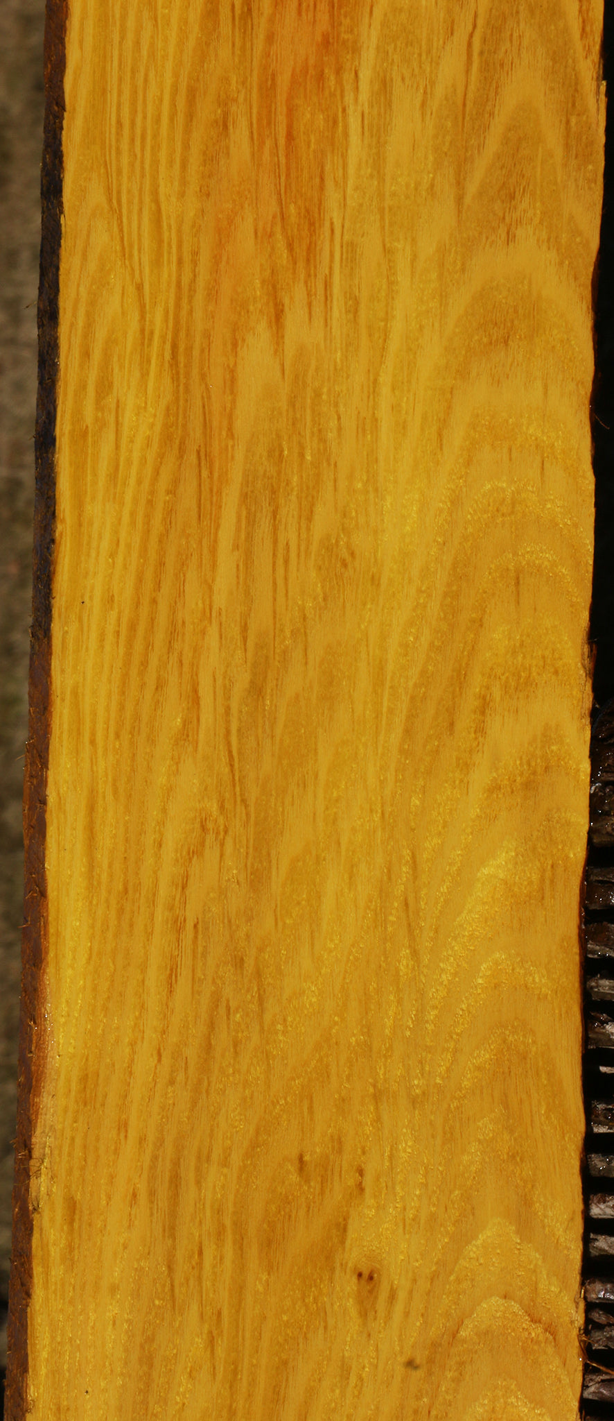 This Osage Orange material has incredible golden to bright yellow color! As it ages and picks up UV light, it turns into a medium brown/orange color. An occasional minor check and rough edges may be present. This wood is kiln dried and ready to use. A slight 1/16" to 1/8" bow may be present in boards over 36". Osage Orange glues and finishes well. This piece has a rough corner. Please see pictures for details.