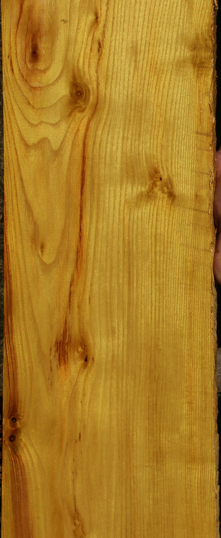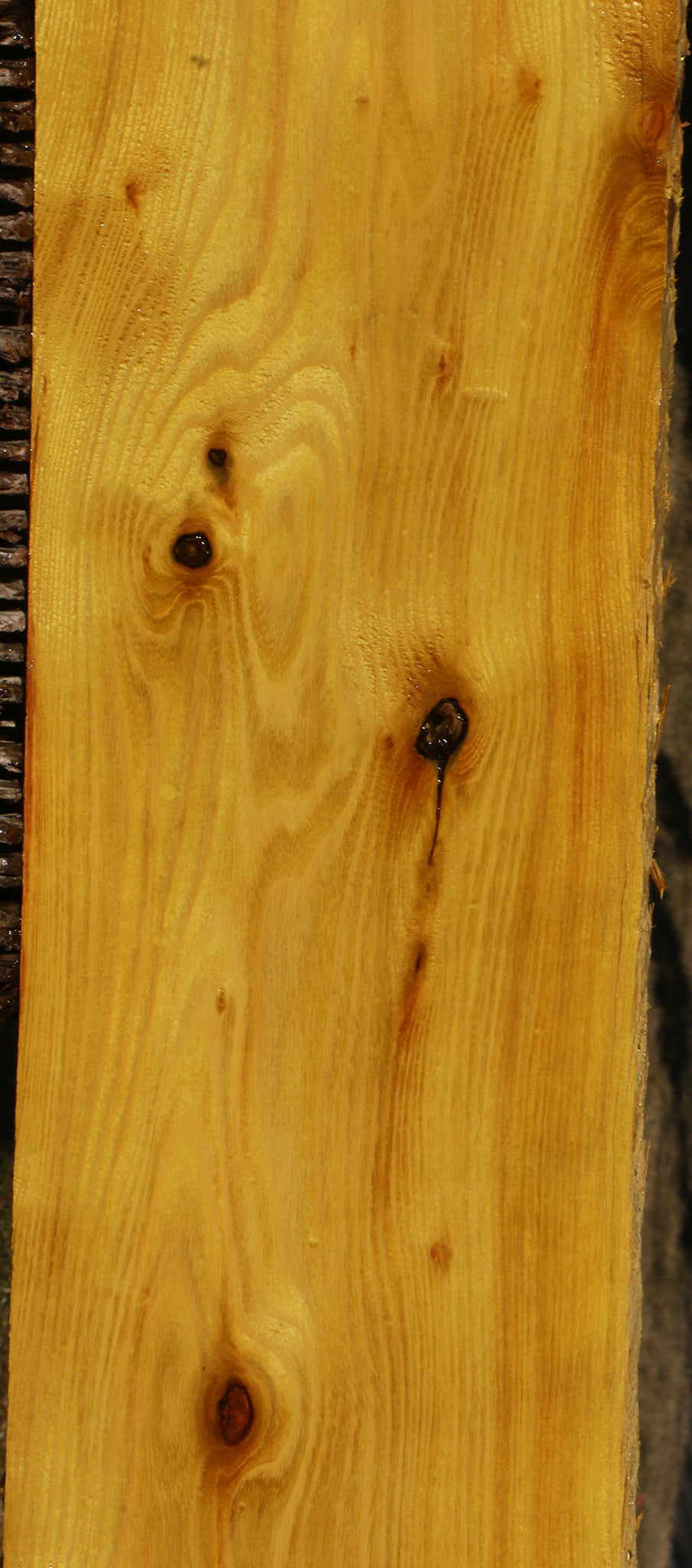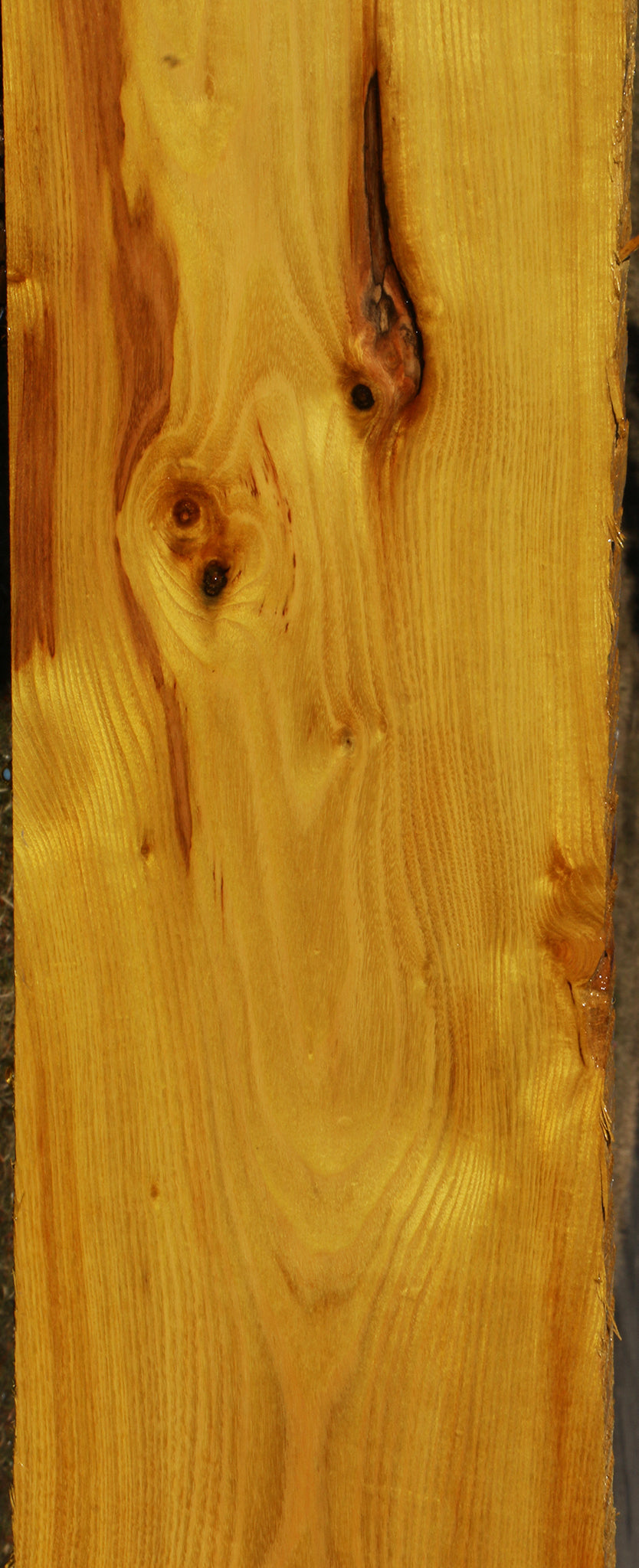 This Osage Orange material has incredible golden to bright yellow color! As it ages and picks up UV light, it turns into a medium brown/orange color. An occasional minor check and rough edges may be present. This wood is kiln dried and ready to use. A slight 1/16" to 1/8" bow may be present in boards over 36". Osage Orange glues and finishes well. This piece has inclusions and knots. Please see pictures for details.