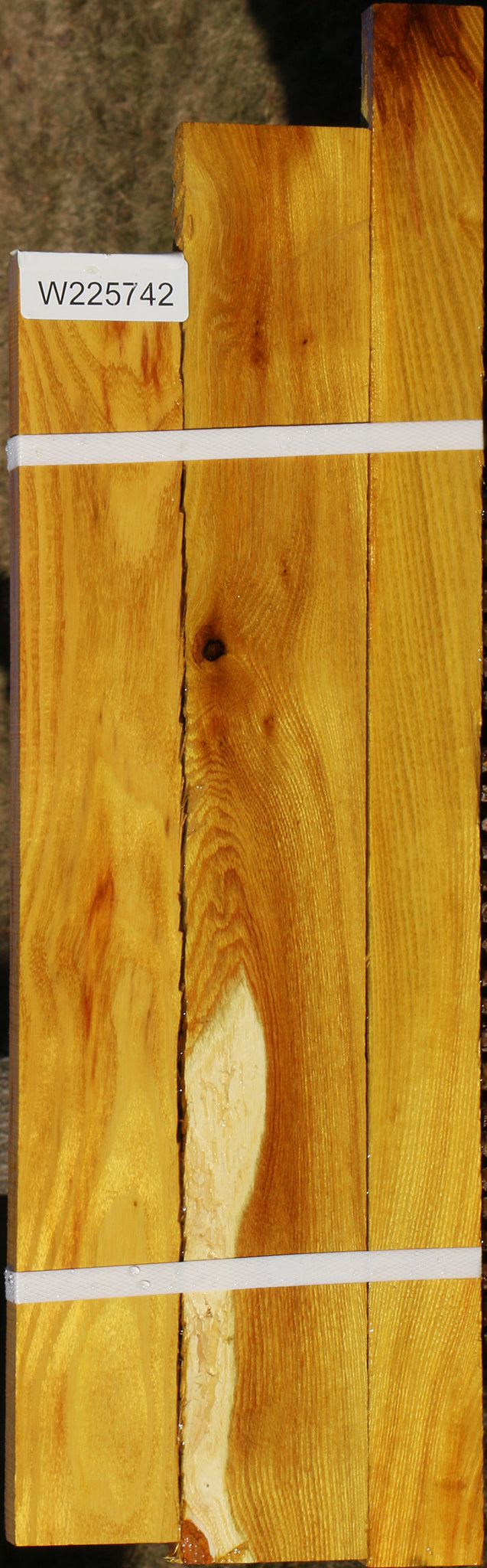 This Osage Orange material has incredible golden to bright yellow color! As it ages and picks up UV light, it turns into a medium brown/orange color. An occasional minor check and rough edges may be present. This wood is kiln dried and ready to use. A slight 1/16" to 1/8" bow may be present in boards over 36". Osage Orange glues and finishes well. This is a 3-piece set. The measurements above are for the shipping size. Please note the individual measurements. Piece 1 measures 19-9/16" x 2-1/2" x 7/8". Piece 2 measures 21-15/16" x 2-13/16" x 7/8". Piece 3 measures 23-15/16" x 1-3/4" x 7/8". Items in this box may contain checks and inclusions.