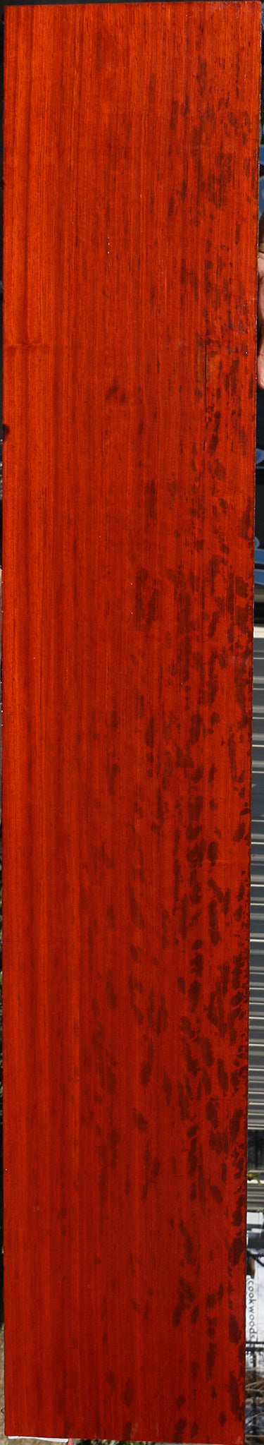 Vibrant and unique, African Padauk is an exotic hardwood that sits in a class all its own. Ranging from homogenous grain to ribbon figured or freckled with color, this species adds stunning beauty to any project! Boards may have a minor check but are very clean. Boards over 36" may have a slight 1/16" to 1/8" bow/twist. Kiln dried and surfaced on two sides, this lumber is ready to use for any woodworking project! This piece has checks and a split. Please see pictures for details.
