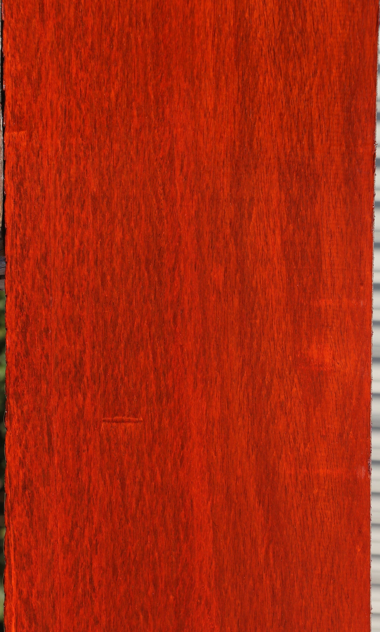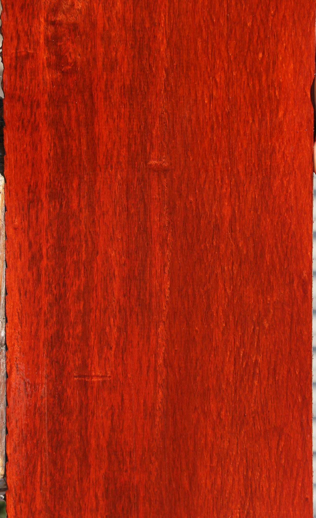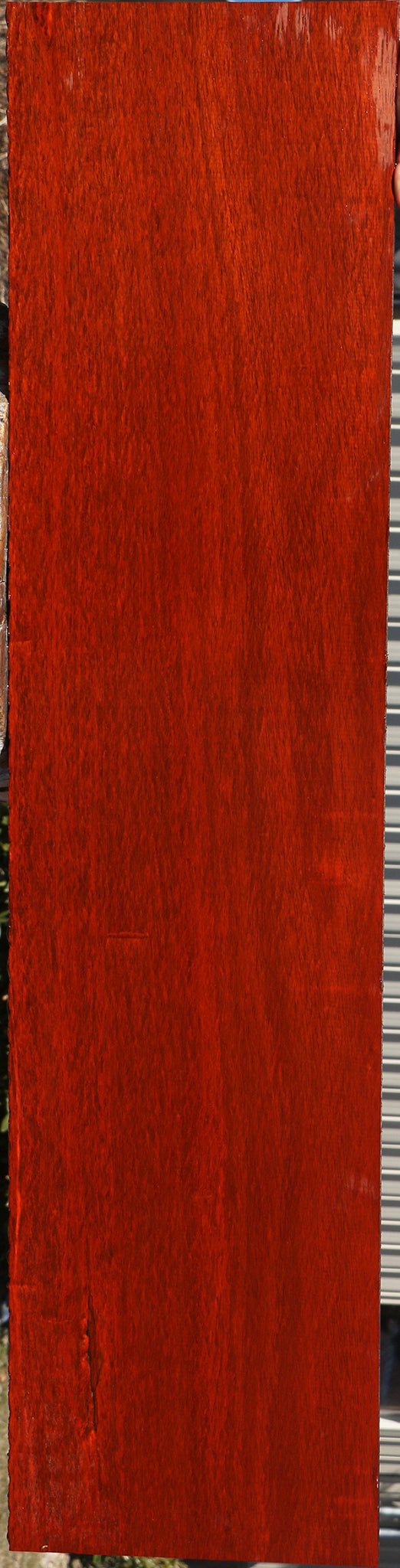 Vibrant and unique, African Padauk is an exotic hardwood that sits in a class all its own. Ranging from homogenous grain to ribbon figured or freckled with color, this species adds stunning beauty to any project! Boards may have a minor check but are very clean. Boards over 36" may have a slight 1/16" to 1/8" bow/twist. Kiln dried and surfaced on two sides, this lumber is ready to use for any woodworking project! This piece has checks and a split. Please see pictures for details.