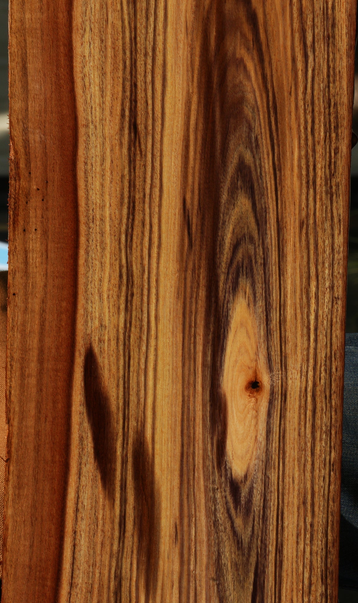 This Patagonian Rosewood has been carefully kiln dried and surfaced on two sides. It is very high quality hardwood lumber, but may have occasional areas of planer skip or minor surface checks. Boards over 3 ft. may have a slight 1/16" to 1/8" twist or bow. The pictures for each individual piece will showcase each one's unique color and characteristics. Enjoy the range of rich tones in this unique exotic wood species. This piece has a partial rough edge, pin holes, planer skip, and inclusions. Please see pictures for details.